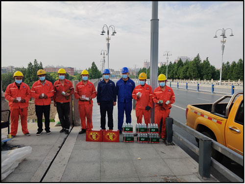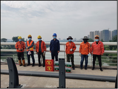 北三环颖河大桥、颍上路泉河桥项增设防撞护栏项目部慰问施工班组