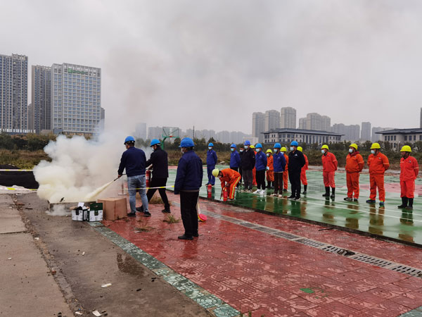 运维事业事业部安全科负责人现场详细讲解了灭火器的使用方法及发生火灾时的正确逃生方法,尔后,全体人员分批次进行了灭火器实践操作使用。