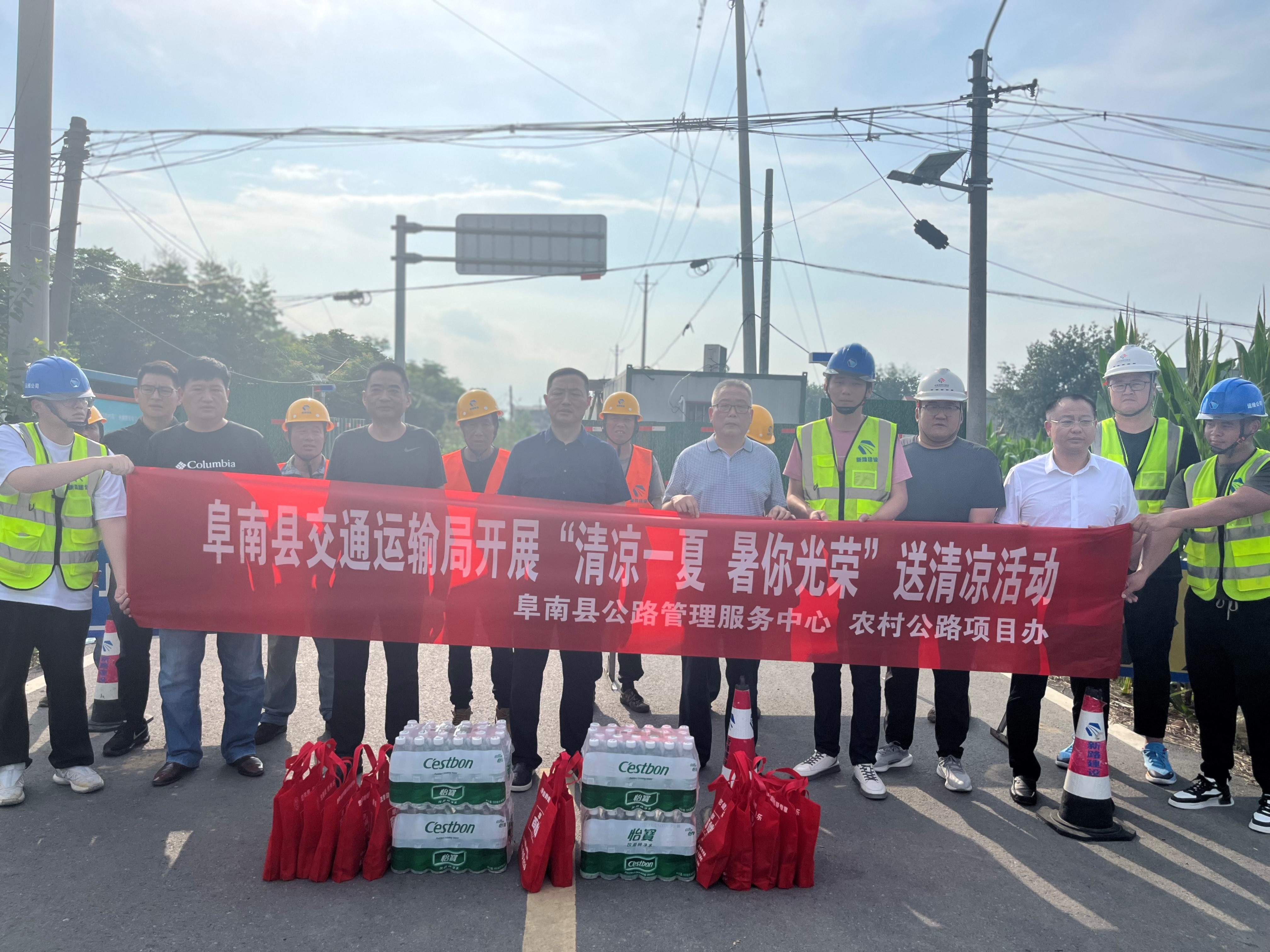 2023年7月24日,阜南县交通运输局组织开展“清凉一夏·暑你光荣”送清凉慰问活动,阜南县交通运输局党组书记、局长张涛,副局长张尚武,阜南县公路管理服务中心主任杜杰;英国365集团公司阜南县2023年农村公路养护工程02标项目部(以下简称养护工程02标)相关人员陪同。