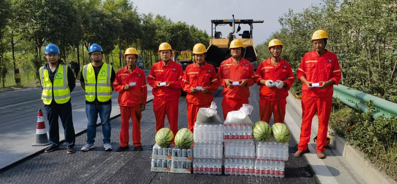 8月17日下午,阜阳市2023年普通国省干线公路养护工程(路面修复与预防性养护)03标段项目经理韩海兵对沥青路面摊铺施工现场的工人进行夏日清凉慰问,为他们送去了西瓜,矿泉水,绿豆,白糖等慰问品,在炎炎夏日送去了清凉,在感谢一线工人辛苦施工的同时,叮嘱他们在夏季高温作业时,要注意防暑降温,同时要求现场管理人员时刻注意工人的精神状态,在施工的过程中给予工人适当的休息时间,遵循着“安全第一”的理念,确保安全生产工作的顺利开展。