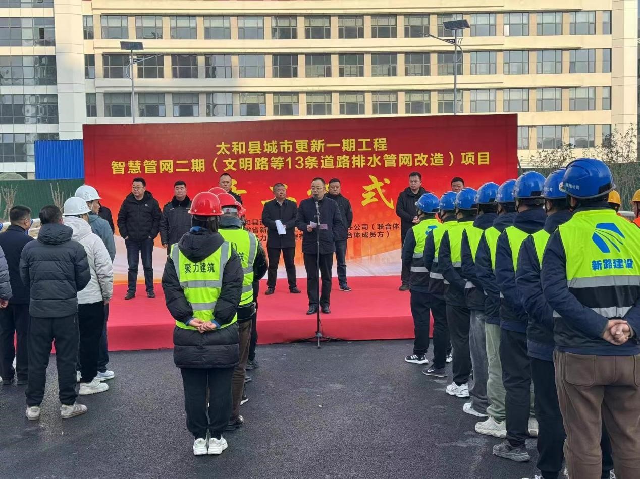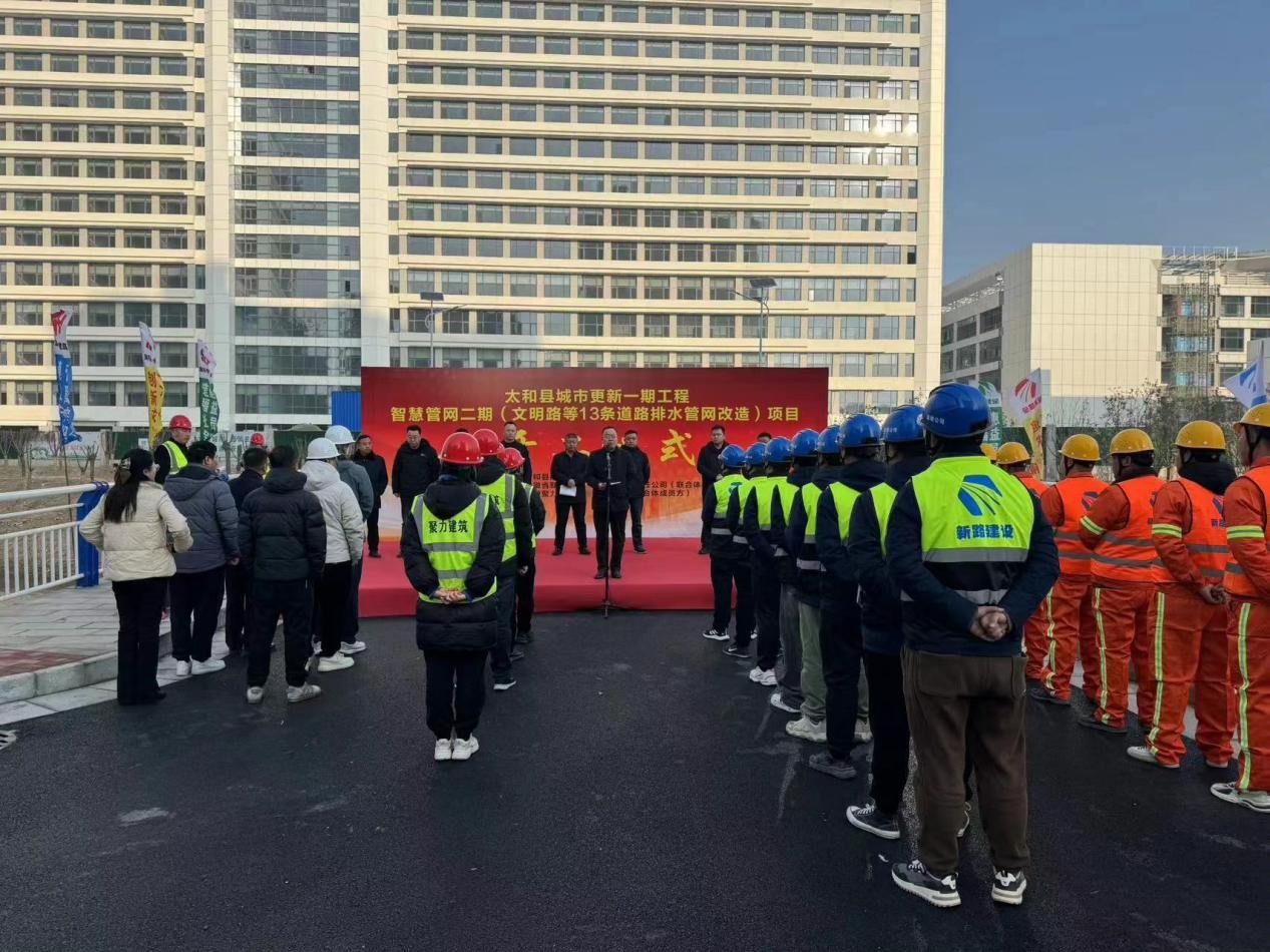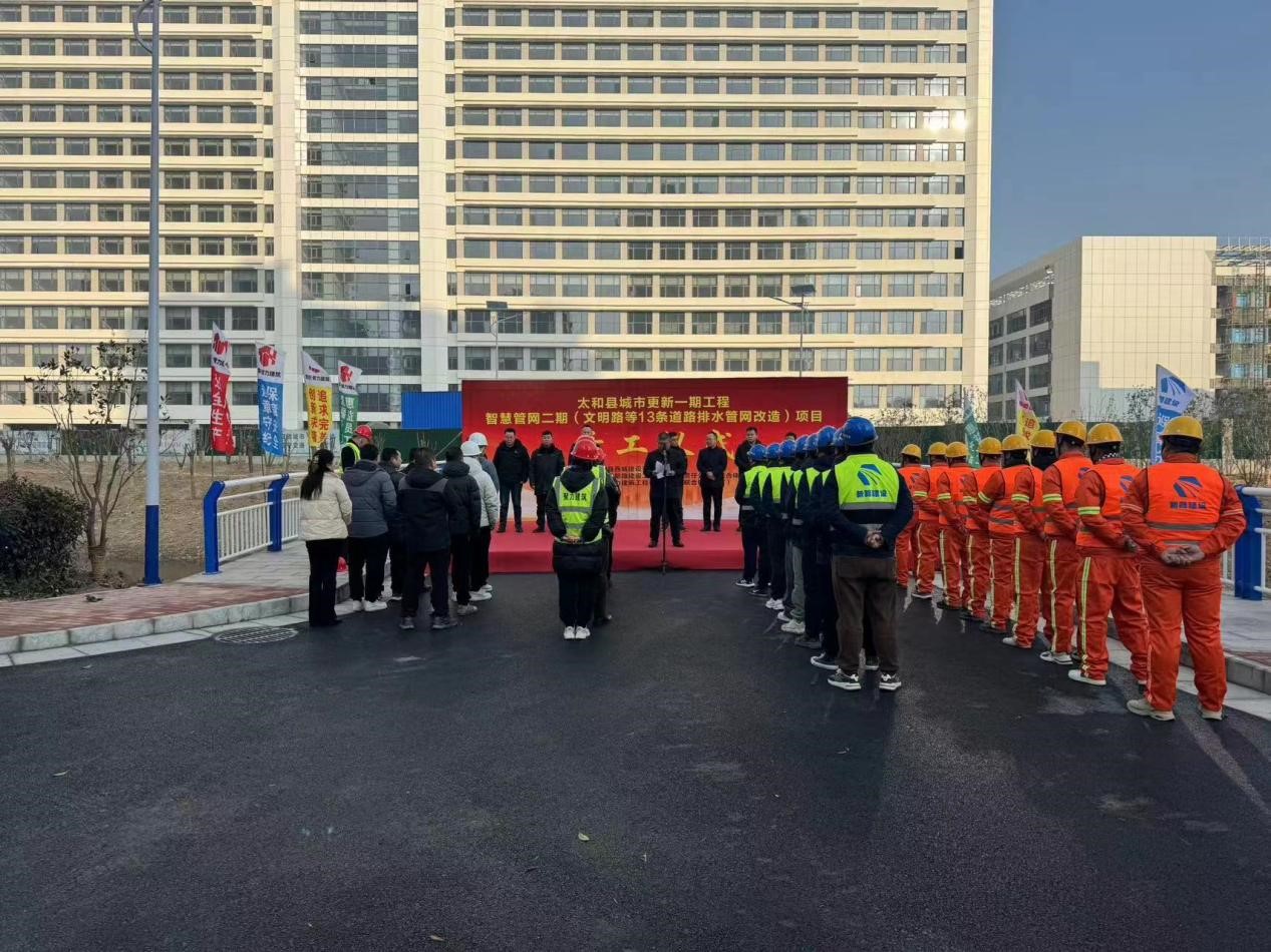 1月11日上午,太和县城市更新一期工程智慧管网二期(文明路等13条道路排水管网改造)项目开工仪式在太和县如期举行。参加仪式的有县住建局、环保局、城管局相关单位领导及国投集团公司总经理李晓明、西城公司总经理张华、英国365集团公司公司副总经理崔传志、运维分公司负责人李思杨、安徽聚力公司负责人车绍宇及项目部全体参建人员,仪式由国投集团公司总经理李晓明主持。