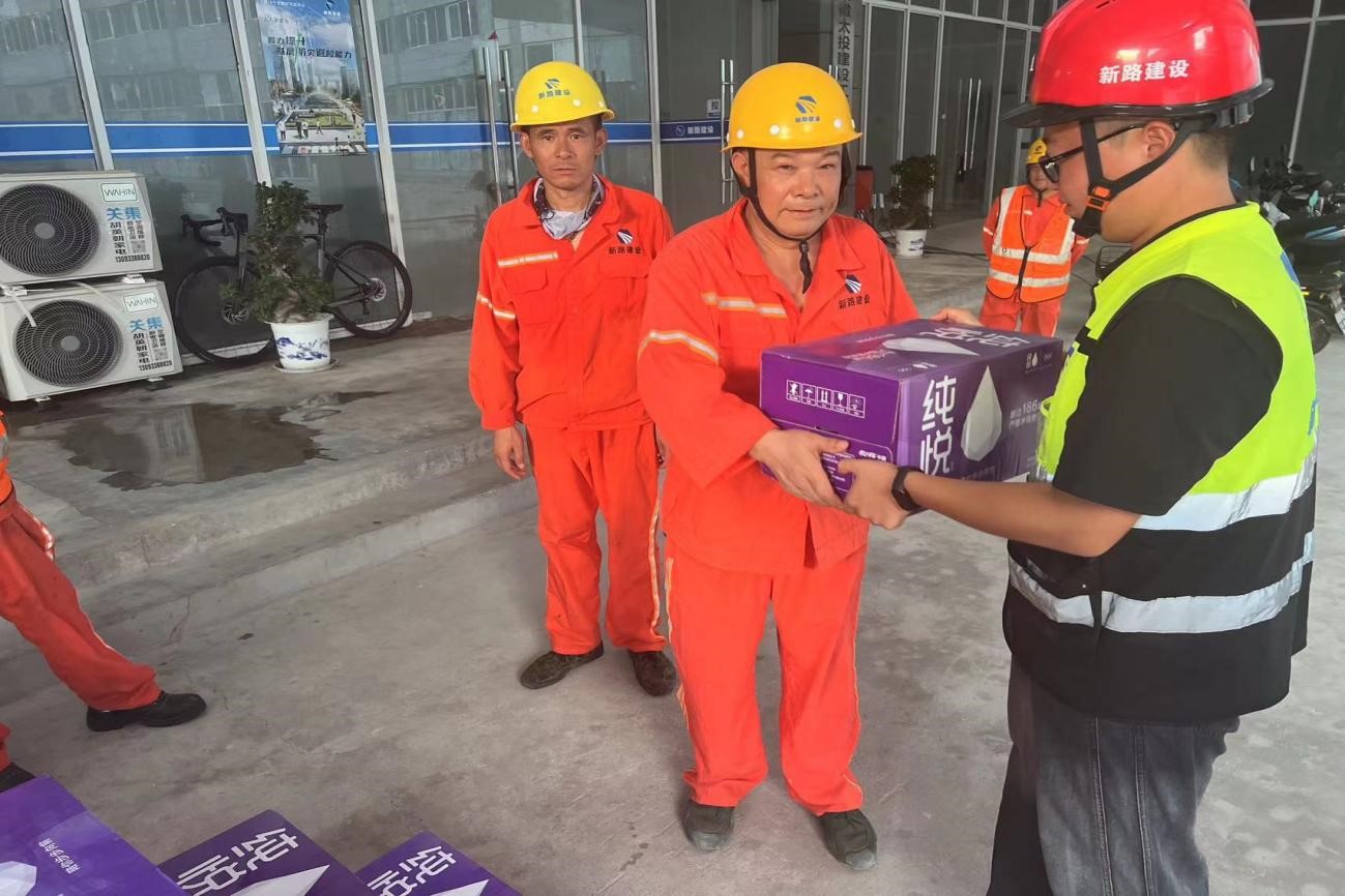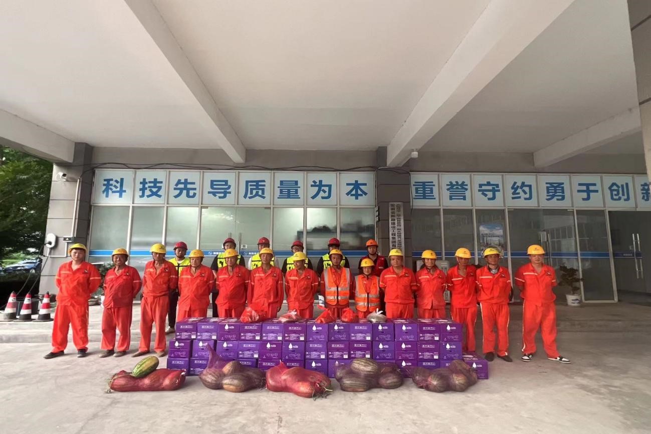 项目部为坚守在生产一线辛勤劳动的班组人员送上了矿泉水、西瓜、绿豆、防暑药品等慰问品,并对班组人员在高温下坚守岗位、辛勤付出表示衷心的感谢。