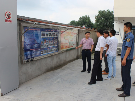 安徽环宇公司滁新、济广高速阜阳段桥梁养护工程项目负责人重点向参观人员介绍了安全管理、制度上墙、标牌摆放、机具摆放、日常管理等方面的标准化建设。王科长要求大家认真倾听,仔细观摩学习,主动询问取经并积极做好记录工作。