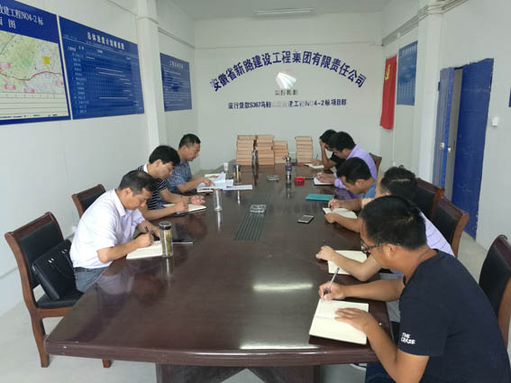最后,检查组一行在项目部会议室进行了内业资料检查并组织召开了总结会议,首先听取了项目部负责人对工程概况、项目进展、质量控制等方面的汇报,检查组人员分别对施工现场存在安全隐患、内业资料不完善等问题做出了强调和要求,并下发了整改通知单要求项目部限时整改完善。