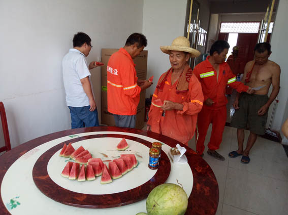 近期酷暑来袭,40℃的高温不断,我项目部积极响应安鑫公司领导对我项目部慰问时的号召,采购了人丹、藿香正气丸、清凉油等防暑用品以及绿豆、西瓜等清凉食品,第一时间组织开展了项目部内部施工班组防暑降温送清凉活动。