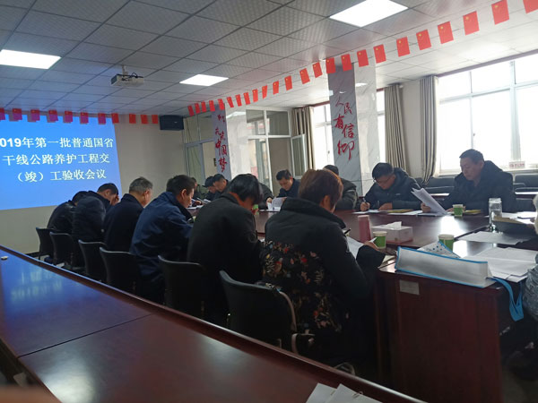 2019年12月18日,在阜阳市路兴公路工程监理有限公司5楼会议室进行了阜阳市2019年国省干线公路养护工程交工会议,此次参加会议的有阜阳市公路局龚帅科长、王忠民科长,科信检测公司李金花主任、路兴监理公司总工和总监秦敏、湖南设计院代表等参加,本次会议由阜阳市地方公路局王忠民科长主持,先后由项目经理韩海兵进行施工总结汇报,再由检测单位、监理单位、监测单位和设计单位进行总结,最后由业主单位对各参建单位施工过程中的工作进行总结评价,我项目部的工作得到了业主单位和各单位的一致肯定与认同。