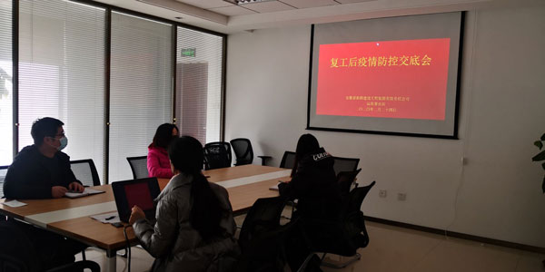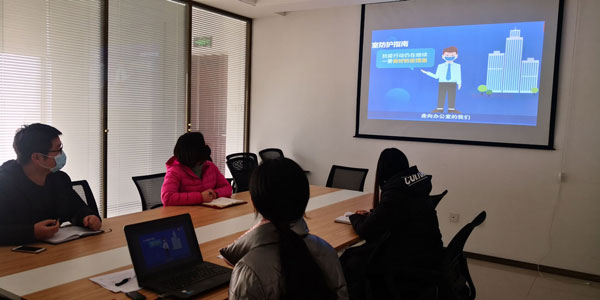 随后运维事业部召开新冠肺炎疫情防控复工交底会,会议由公司综合科组织召开。会上,综合科就贯彻落实高新区管委会及公司各项复工防疫措施对大家进行交底,同时对员工做好疫情防控宣传,组织大家观看视频《疫情下办公室的安全防护》,确保员工安全放心上岗。