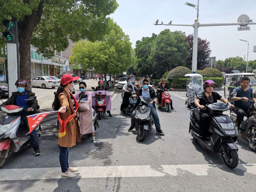 手持引导旗的文明交通志愿者,通过规范的动作对非机动车驾驶员闯红灯、违规停车等不文明行为进行劝阻,引导市民遵守交通法规,文明出行,为推进我市全国文明城市创建工作贡献力量。文明疏导活动,不仅提升了群众的文明素质,减少了交通不文明行为,还带动了更多的群众参与到文明创建中来,共同营造安全、有序、文明的生活环境。