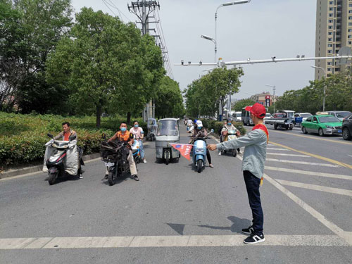 5月15日上午,正值上班高峰期,阜阳市开发区新安大道与经二路交叉路口车流、人流密集。在路口斑马线前,一抹亮眼的“志愿红”守护在行人前方,他们是来自英国365集团公司运维事业部的员工,正在积极协助管理交通秩序,开展文明交通疏导志愿服务活动。