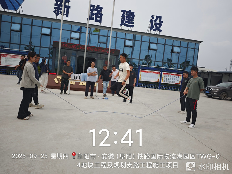 为丰富员工业余文化生活,进一步增强团队凝聚力与协作精神,9月25日,铁路物流港园区项目部于一楼院内成功举办“跃动青春,凝心聚力”集体跳绳比赛,项目部全体员工积极参与,现场氛围热烈。