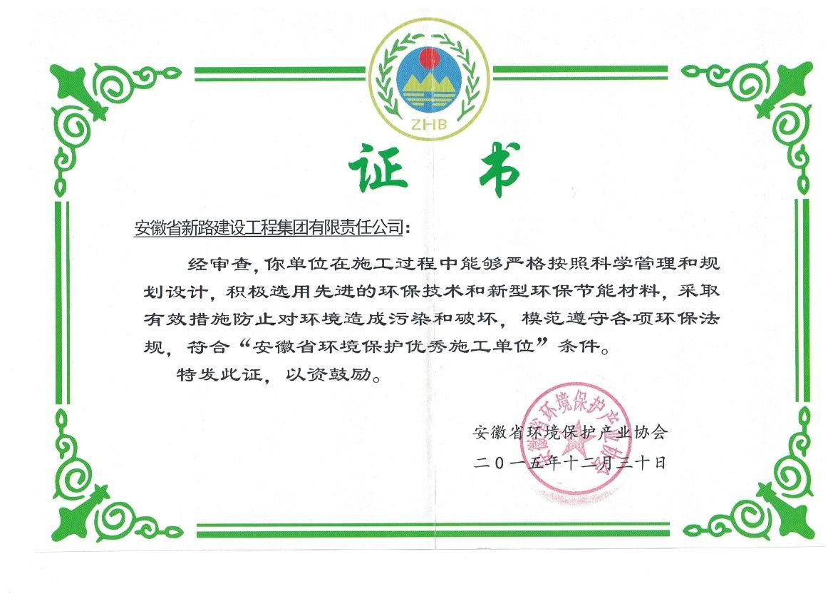 省环境保护优秀施工企业