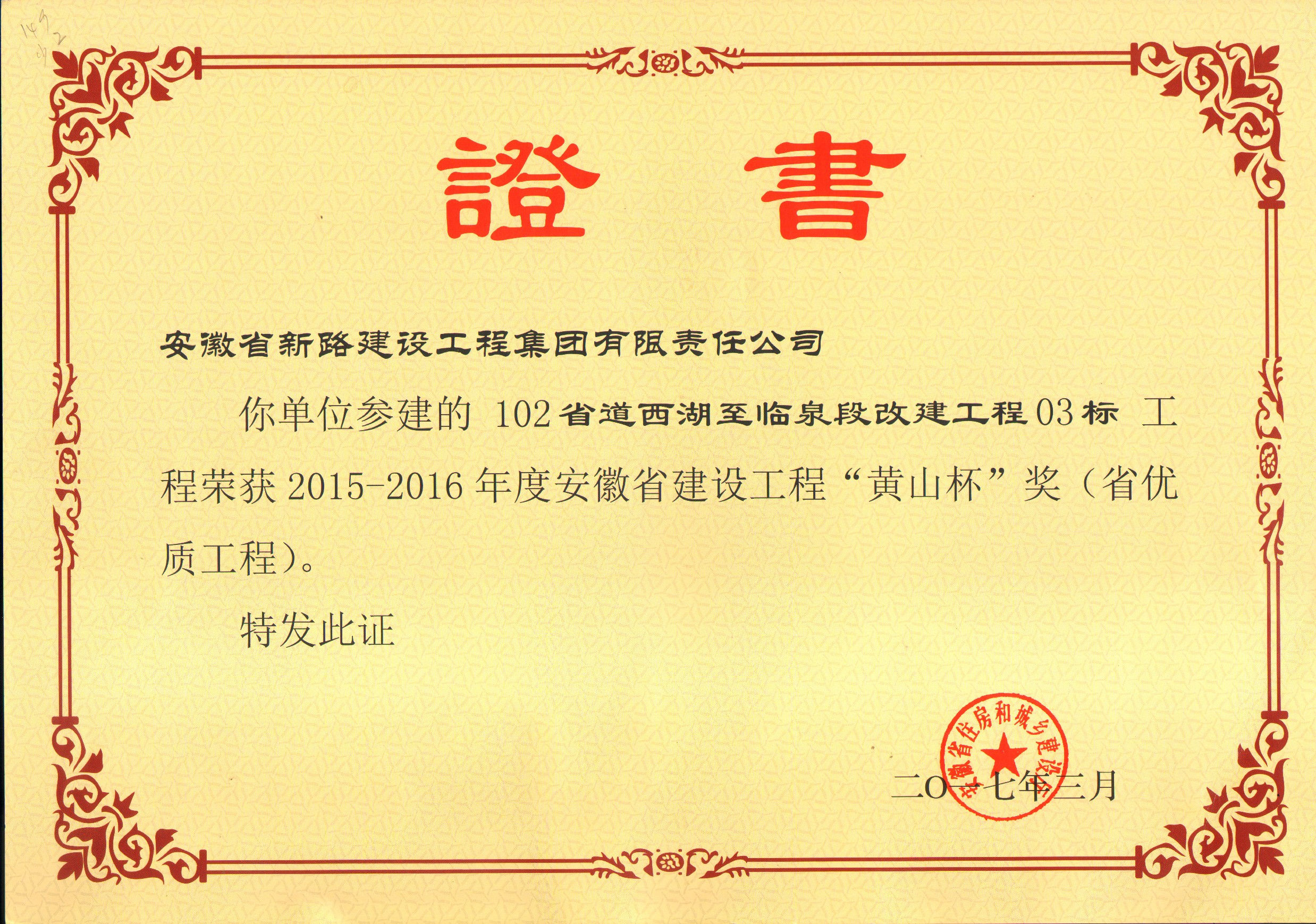 黄山杯奖-102省道西湖至临泉段改建工程03标