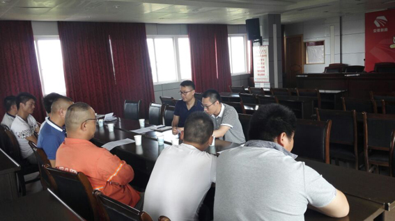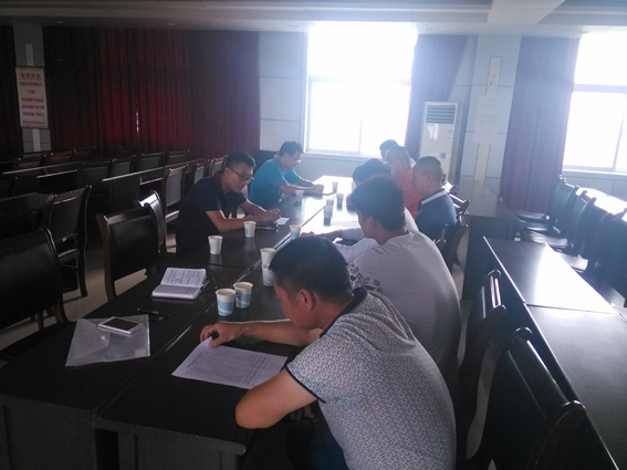 2015年7月14日上午,阜阳路虹养护公司利用施工间隙,在公司五楼会议室召开了摊铺班组人员调整会议。