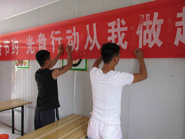 7月3日,临泉水稳拌和站举办了以“厉行勤俭节约,反对铺张浪费,光盘行动,从我做起”为主题的光盘行动。首先,由拌和站职工王震向大家讲述了光盘行动的相关知识及必要性,让同事们了解光盘行动的重要意义所在。随后,大家纷纷表达了自己的看法,并承诺在家吃饭时,做到不挑食不扔菜;在食堂吃饭时,做到不浪费,依自己的用量打菜和饭;在饭店吃饭时,要做到适度适量,杜绝浪费。最后,拌和站全体职工在光盘行动宣传标语上签名,以实际行动表示加入光盘行动中,一起对浪费说“不”。