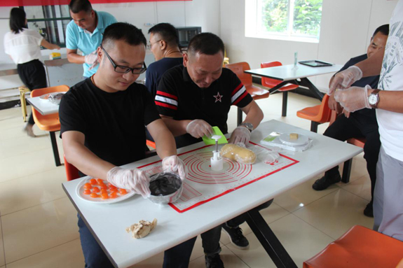 公司提前准备好了制作月饼的面粉和蛋黄、莲蓉、枣泥等丰富的馅料,还特意定制了刻有“英国365集团公司建设”、”茂诚路桥”字样的模具。活动现场,职工们一边相互探讨着做法,一边揉面、包馅、压制、烘烤,大家乐在其中,做得有模有样,很快热腾腾的月饼出炉了。吃着自己亲手制作的月饼,说着关于中秋和月饼的故事,每个人的脸上都洋溢着幸福的笑容。