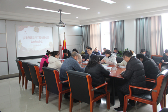 2020年1月3日上午,由集团公司副总崔勇带队,对我公司进行了2019年年度考核工作。期间,负责考核的人员全面、认真地对人资、行政、党建、工会、经营、工程、安全、财务等各方面工作记录资料进行了查阅、考评,结束后召开了年度考核总结会,首先由考核人员对各部门工作考核情况进行通报并提出了宝贵意见和建议,然后由崔勇副总对整个2019年工作作出了简要总结,希望大家以后在各项工作上能够更好的完成,并对集团公司未来规划及2020茂诚公司发展定位方向作了简单介绍,最后茂诚公司经理尹飞对考核组提出的反馈意见和建议表示感谢,同时他要求,各科室负责人、各岗位具办人员务必按照考核组提出的良好建议,积极整改完善,争取在2020年创造更好的成绩!
