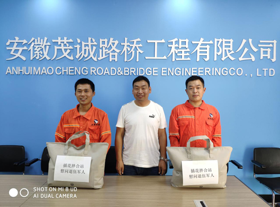 为弘扬拥军爱民的优良传统,2020年8月1日,插花拌合站组织召开了慰问退伍军人座谈会。会议由插花拌合站站长及2名在岗退伍军人参加会议。座谈会上,拌合站站长亲切地询问了退伍军人的身体和家庭生活情况,了解他们在生活中存在的困难。同时,感谢他们为国家、为军队和为公司所做的贡献,并祝福他们“八一”建军节快乐。