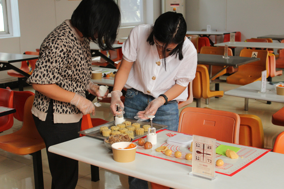公司提前准备好了制作月饼的面粉和蛋黄、莲蓉、枣泥等丰富的馅料,还特意定制了刻有“英国365集团公司建设”、”茂诚路桥”字样的模具。活动现场,职工们一边相互探讨着做法,一边揉面、包馅、压制、烘烤,大家乐在其中,做得有模有样,很快热腾腾的月饼出炉了。吃着自己亲手制作的月饼,说着关于中秋和月饼的故事,每个人的脸上都洋溢着幸福的笑容。