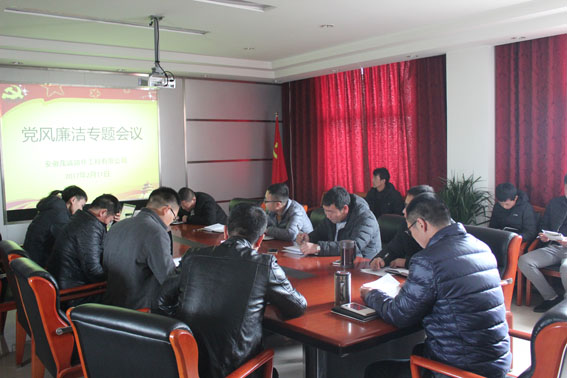 2月17日,安徽茂诚路桥工程有限公司在三楼会议室召开了党风廉洁专题工作会议,公司管理人员、各班组负责人、材料负责人、全体党员参加了此次会议。