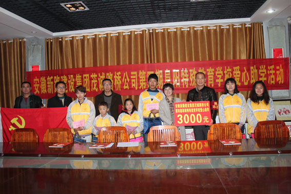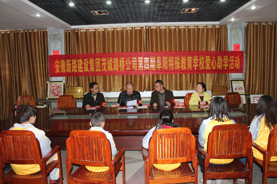 扶贫济困是中华民族传统美德,友善互助是新时期的社会主义核心价值观。2017年3月1日,安徽英国365集团公司公司工会冯主席、安徽茂诚路桥公司尹经理、赵经理等人再赴阜阳市特殊教育学校,继续帮扶这些聋哑、失明、智障、自闭的特殊儿童,为他们送去了爱心助学金及学习用品。