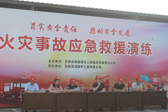 6月22日下午,茂诚路桥公司组织开展火灾事故应急救援演练。集团公司总经理韩恒忠、副总经理李超、安全部部长苗玉磊以及开发区消防支队等40余人出席并观摩了本次演练。
