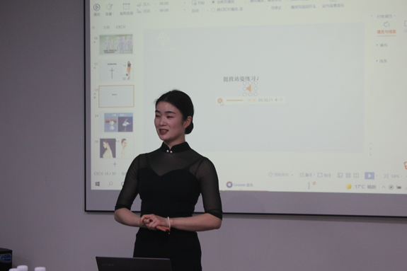 形体仪态老师讲授了讲述了女性不良体态的危害、造成不良体态的原因和怎样保持正确优雅的形体仪态知识。在温馨愉悦的氛围中,大家都积极认真的听讲,努力把老师教的每一个动作做标准,并针对每一个学员的自身体态问题,老师也依次给大家提出了解决方案。