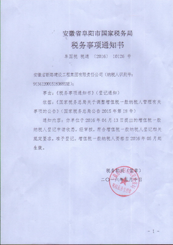 税务事项通知及公司开票信息