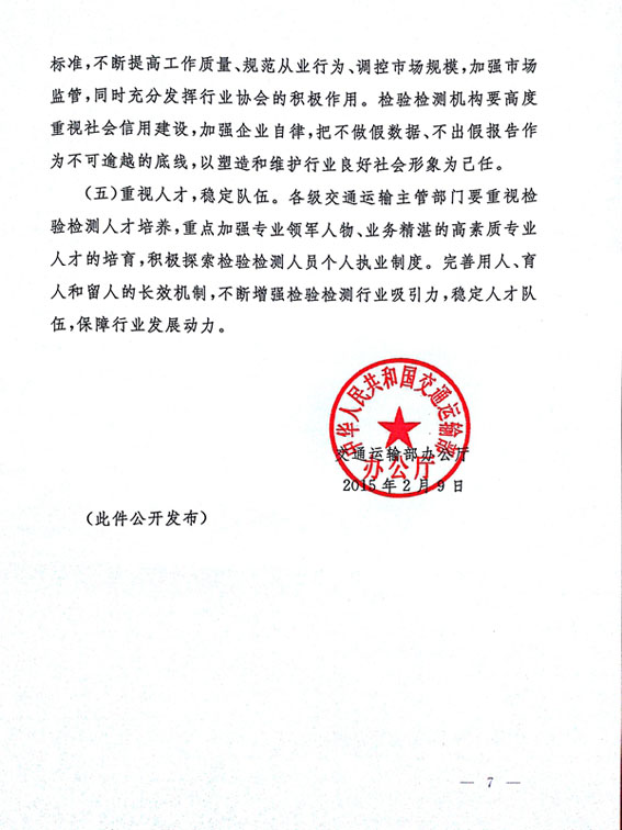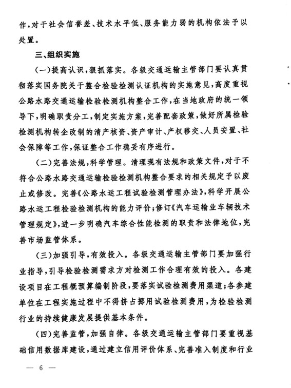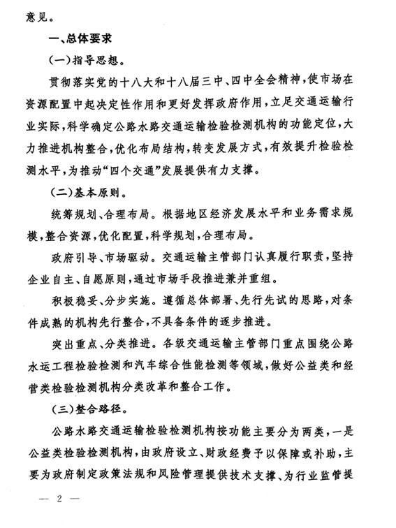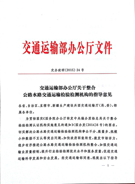 交通运输部办公厅关于整合公路水路交通运输检验检测机构的指导意见