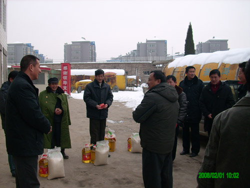 为保证公司困难职工能过上一个安定祥和的春节,2月1日上午,公司袁总、殷书记带领工会、办公室一行带着关怀,给分公司困难职工送去了大米、食油和慰问金,为困难职工送去了集体的温暖。困难职工十分感动,感谢总公司的关心和照顾,表示一定努力工作,尽职尽责,为公司的发展尽自己的一份力量。