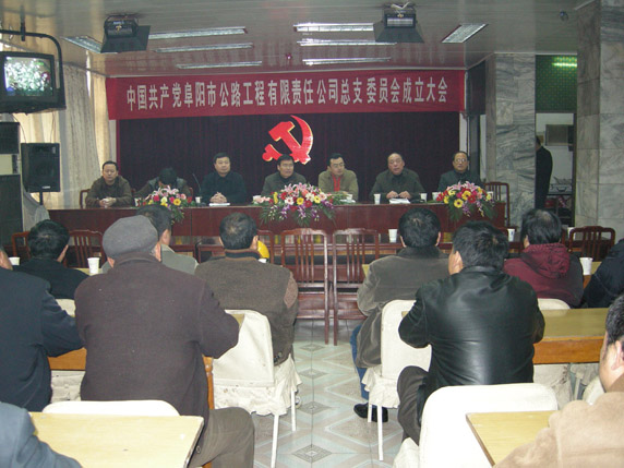 根据市局党委文件精神,我公司于2007年12月5日召开了中国共产党阜阳市公路工程有限责任公司总支委员会成立大会,大会在市局党委的指导下,圆满完成,并初步形成如下决议:
