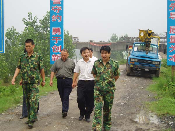 面对洪灾,刘颍河大桥项目部紧急启动了《防汛应急预案》,积极采取自救措施,力争将损失降到最低。项目经理储继业带领大家利用船舶倒运水泥至坝上,刚刚进场的水泥储存到颍上县公路分局,职工在料场上用碎石搭建高台,存放混凝土泵车,所有的设备电机全部卸掉转移,对便桥上的混凝土泵管及小型设备全部转移,特别是对200吨趸船及船上吊车,用2-3股直径17.5mm钢丝绳捆绑在墩柱上,防止被洪水冲走,避免造成重大事故。大家临时在坝上搭建食堂,一手端着开水,一手拿着方便面,临时填饱肚皮,继续抢运物资。