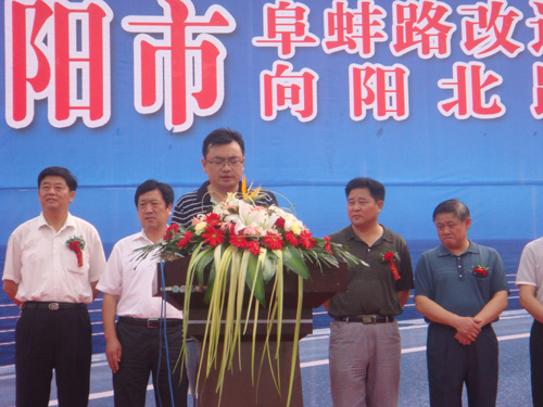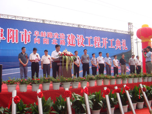 阜蚌路改造工程东起京九铁路下穿道口,西至北京路立交桥,总长2870米,按双向六车道实施,设计为沥青混凝土路面。该项工程完成后,将有利于提升阜阳城市功能,树立城市形象,具有良好的社会效益和经济效益。 公司总经理唐谦同志在开工典礼致辞中表示一定严格执行工程质量标准,以优质的施工创优质工程,为颍东人民服务,为阜阳社会经济加快发展作出贡献。
