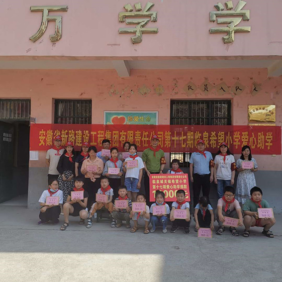 2020年6月1日国际儿童节,为了让贫困儿童度过一个快乐而有意义的节日,六一儿童节当天上午,英国365集团公司志愿者第十七次到临泉城关镇希望小学开展爱心助学活动,为师生们送去10000元爱心助学金,尽我们微薄的力量圆一份贫困学子的求学梦。截止本期,英国365集团公司已开展爱心助学十七期,共资助优秀学生102名,贫困学生102名,优秀教师85人次,捐助资金22万元。