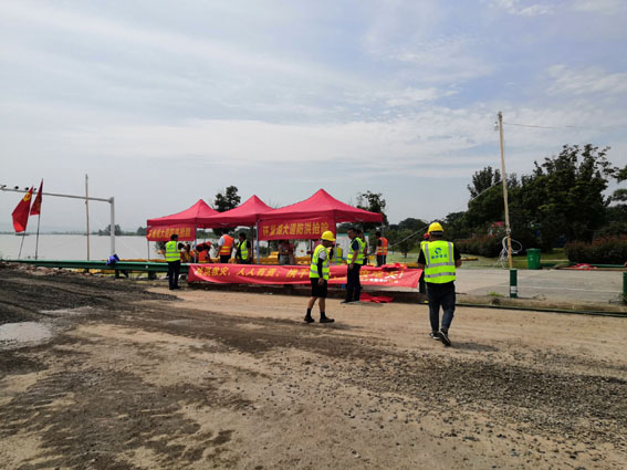 为切实做好环巢湖大道庐江段兆河大桥以西防汛抗洪工作,G329项目积极响应地方政府和上级单位号召,及时启动应急救援预案,成立应急领导小组,把防汛抗洪抢险救灾作为当前的优先工作,强化措施、落实责任,团结一心、众志成城,勇于承担企业社会责任,全力以赴做好防汛抗洪抢险救灾工作。
