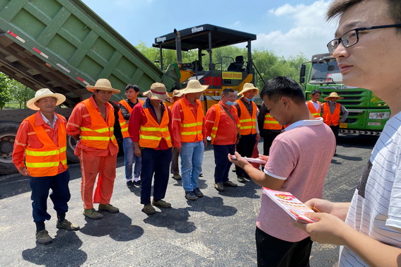 本次宣传活动以摆设宣传展板的方式在万福镇施工现场宣传相关安全工作。项目公司准备了宣传资料、防暑降温慰问品对各施工班组作业人员进行安全宣传。
