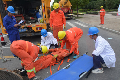 2021年6月是全国第20个安全生产月,为更好统筹发展和安全,切实把安全责任扛在肩上、落在行动上,以实际行动和实际效果做到宣贯“落实安全责任,推动安全发展”的理念。6月23日下午,我部以“安全生产月”为契机,结合市政工程特点,在建设单位、集团公司、运维事业部相关领导的指导下,于城南新区润河路—城泉路交口向西50米辅道组织开展清淤作业“有限空间作业气体中毒应急救援”演练活动。