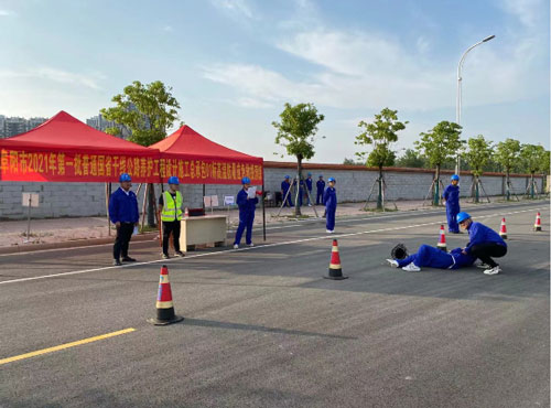 本次演练突出实战,模拟长安路路面摊铺现场施工过程中发生1名作业人员高温中暑急救事件,项目部立即启动应急响应,在现场指挥部统一部署下,各应急救援小组迅速行动,按照职责分工紧张有序展开救援。现场人员先将中暑人员抬到阴凉通风处,进行紧急救护,随后医疗救护组赶到,对中暑人员进行进一步救治,并紧急送往医院。最后,善后处理组对现场其他施工人员的身体状况进行排查,现场急