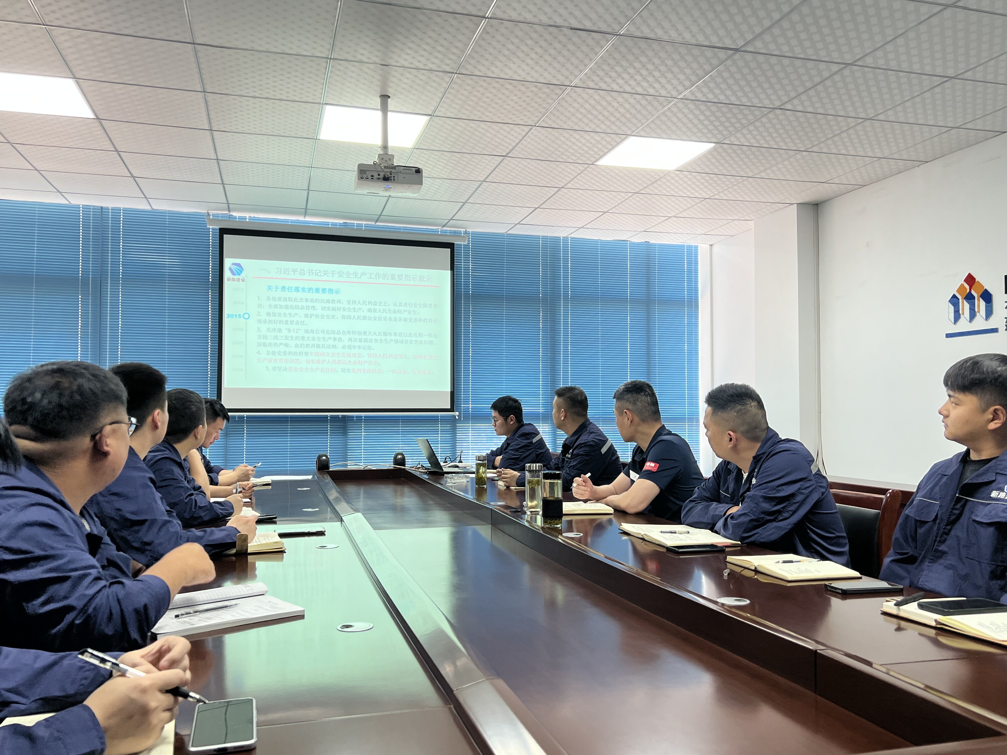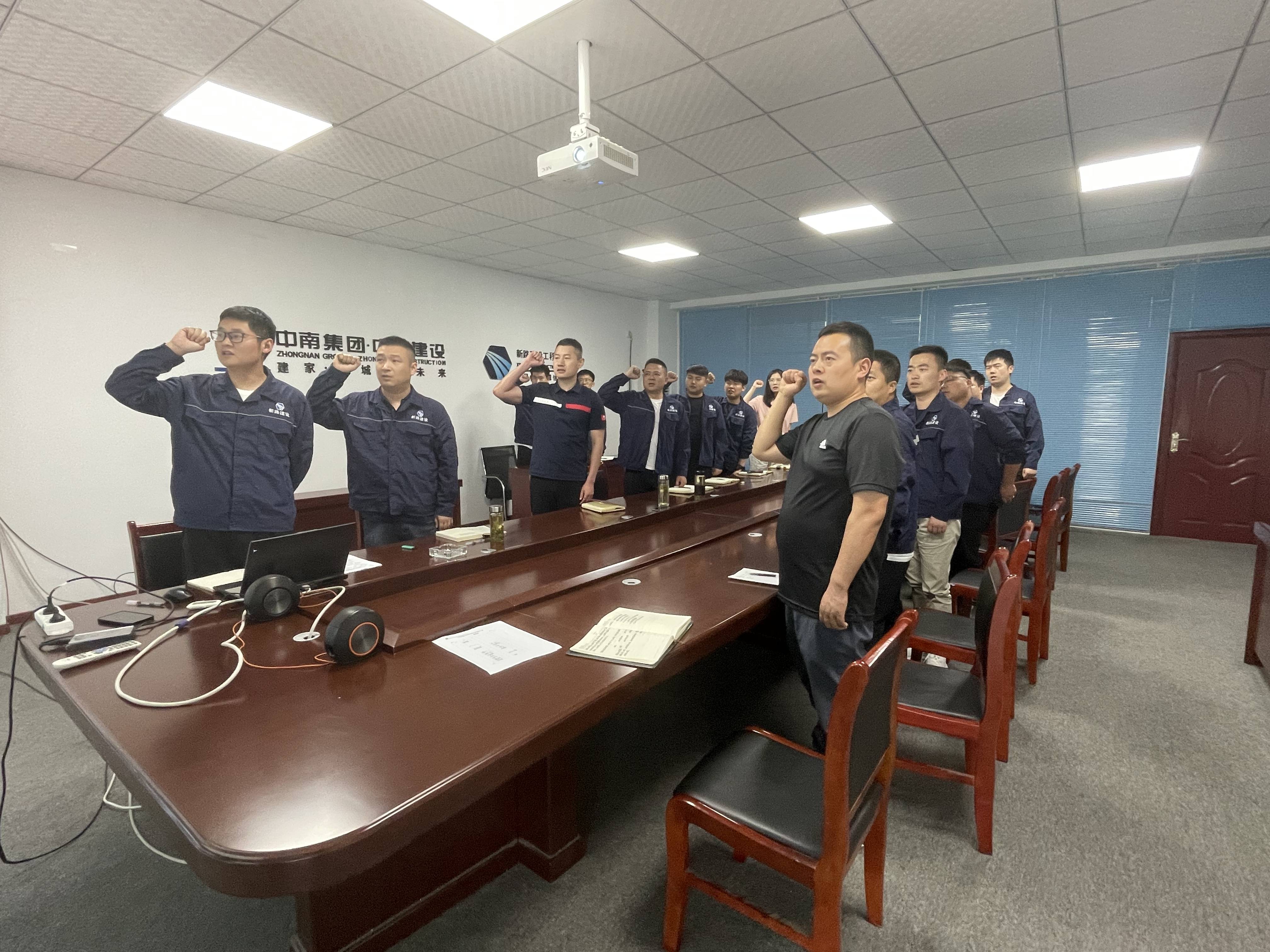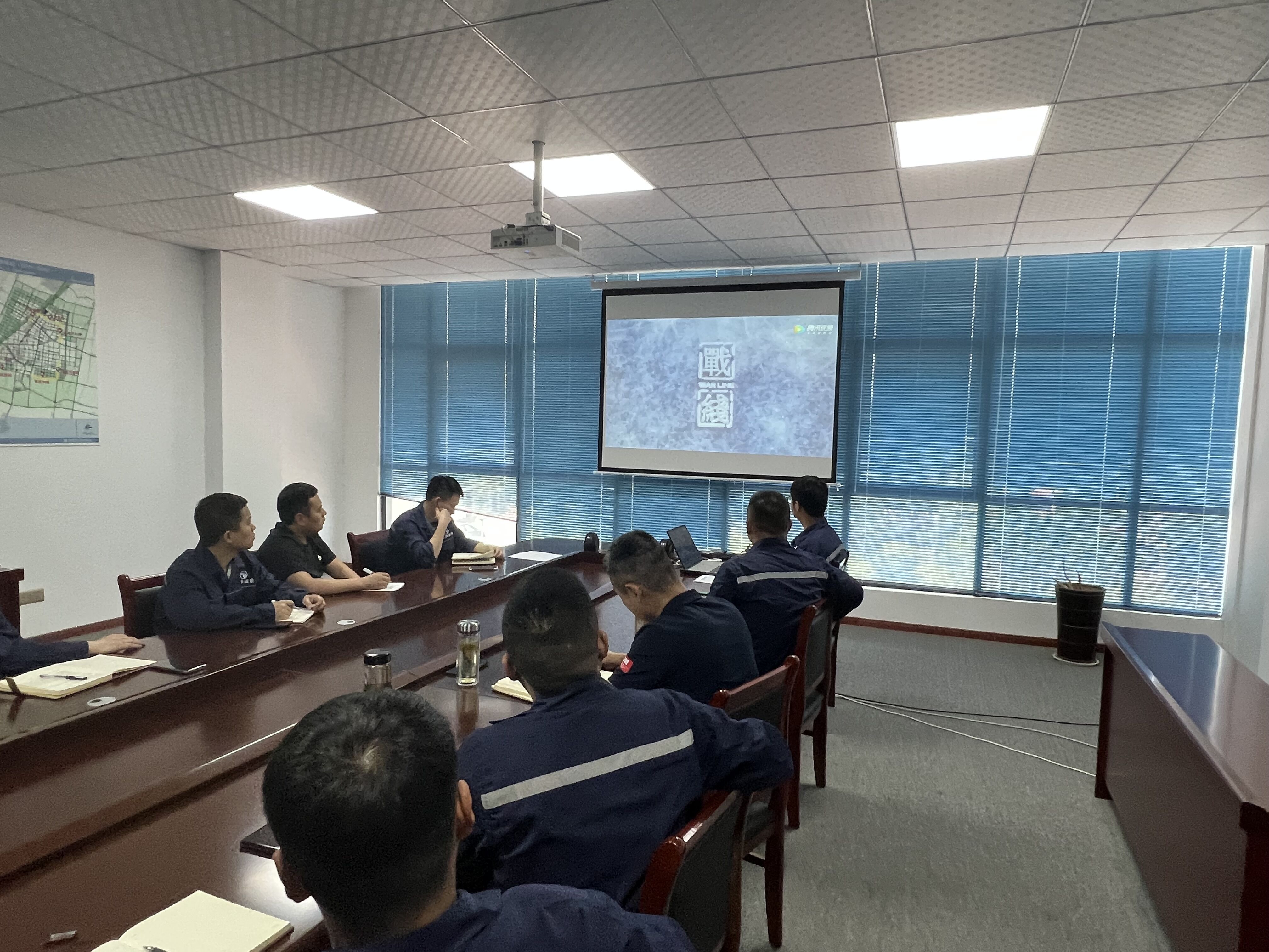 项目经理薛鸿儒宣布活动正式启动,并带领项目部全体人员集中学习习近平总书记关于安全生产的重要指示批示和生态环境保护的十个精妙论述。安全科科长梁争光组织全体人员观看2023年安全月主题宣传片《防为上》以及安全微电影《战线》,最后项目经理薛鸿儒起立带领项目部全体员工进行安全宣誓。