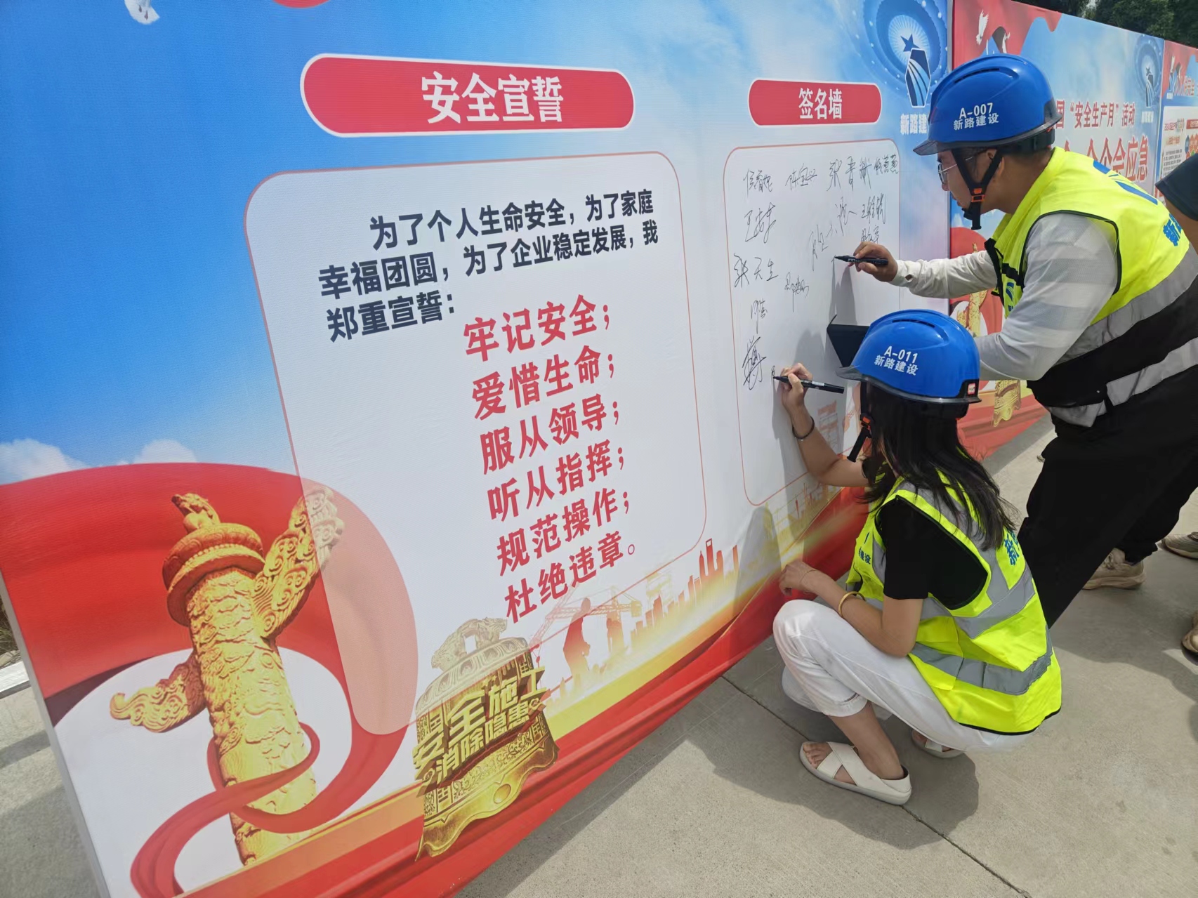 此外,项目部还组织了安全宣誓仪式,全体成员郑重承诺:牢记安全、爱惜生命、服从领导、听从指挥、规范操作、杜绝违章。