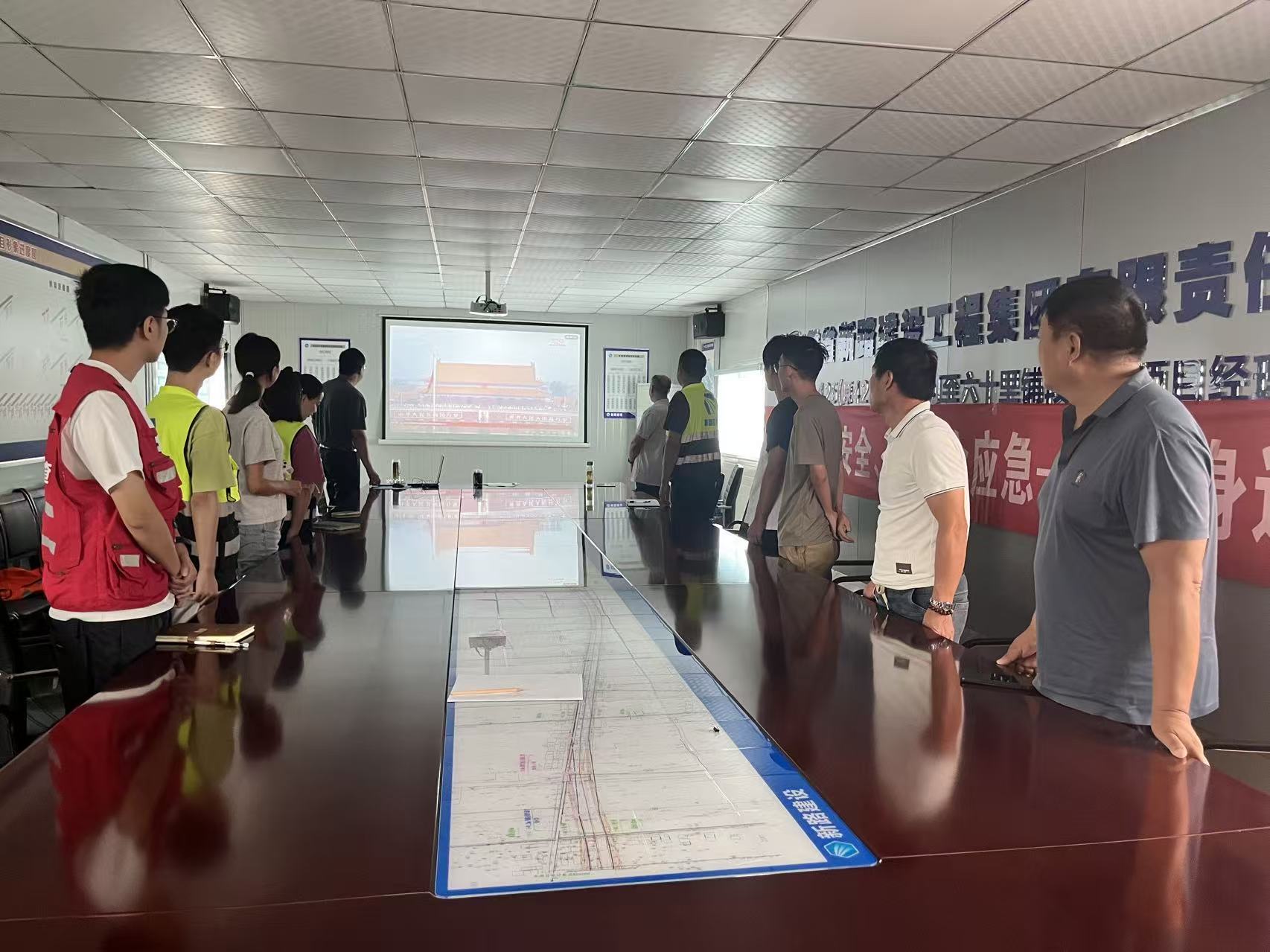 9月3日,纪念中国人民抗日战争暨世界反法西斯战争胜利80周年阅兵仪式在北京天安门广场隆重举行。425(原423)省道颍河至六十里铺段工程项目部组织全体员工集中观看了阅兵直播,共同见证这一庄严而盛大的时刻。