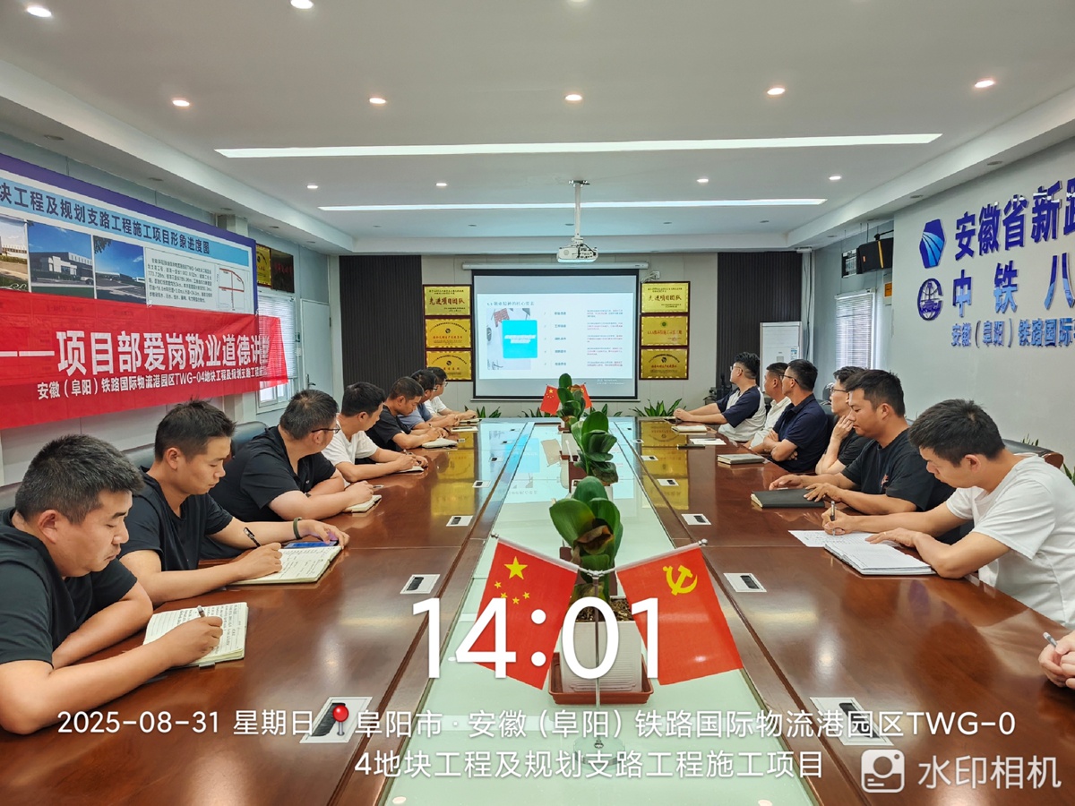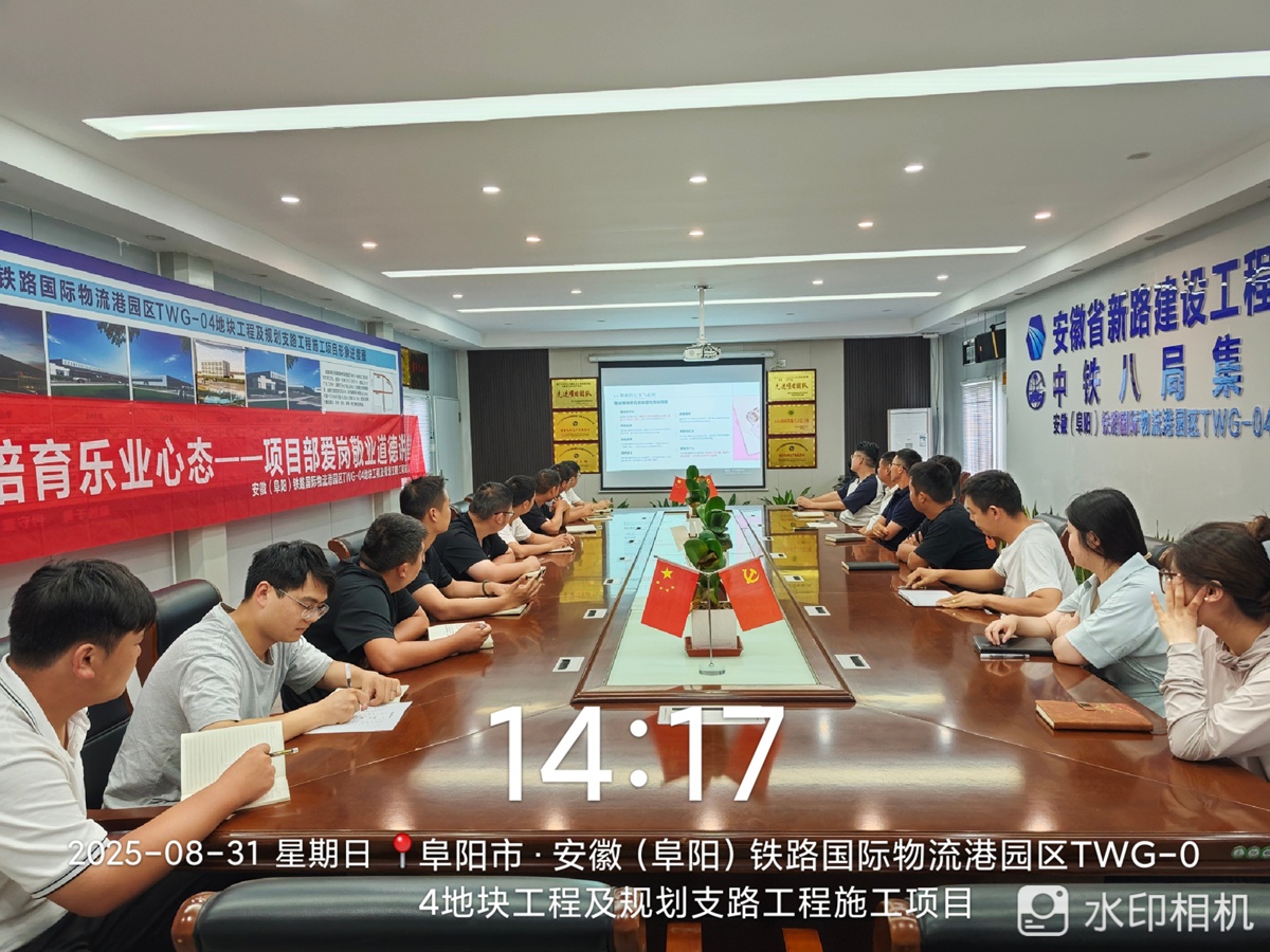 2025年8月31日,铁路物流港园区项目组织开展了以“践行敬业精神,培育乐业心态”为主题的爱岗敬业道德讲堂活动,全体员工积极参与,共同在学习与分享中深化对爱岗敬业精神的理解。