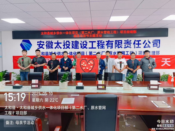 为弘扬孝亲文化,营造和谐温馨的企业氛围,太和供水一体化项目部于5月10日组织开展“感恩母亲节,爱在五月天”主题活动,全体项目成员热情参与。
