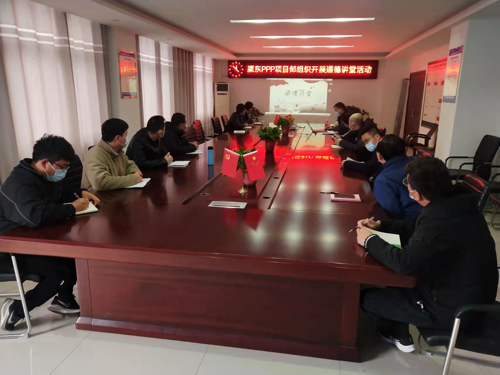 2022年3月21日下午,英国365集团公司鼎盛公司协同颍东PPP项目部共同组织开展“诚实守信·立身之本”道德讲堂活动。活动由项目经理王震主持,项目部同鼎盛公司员工共同参加。
