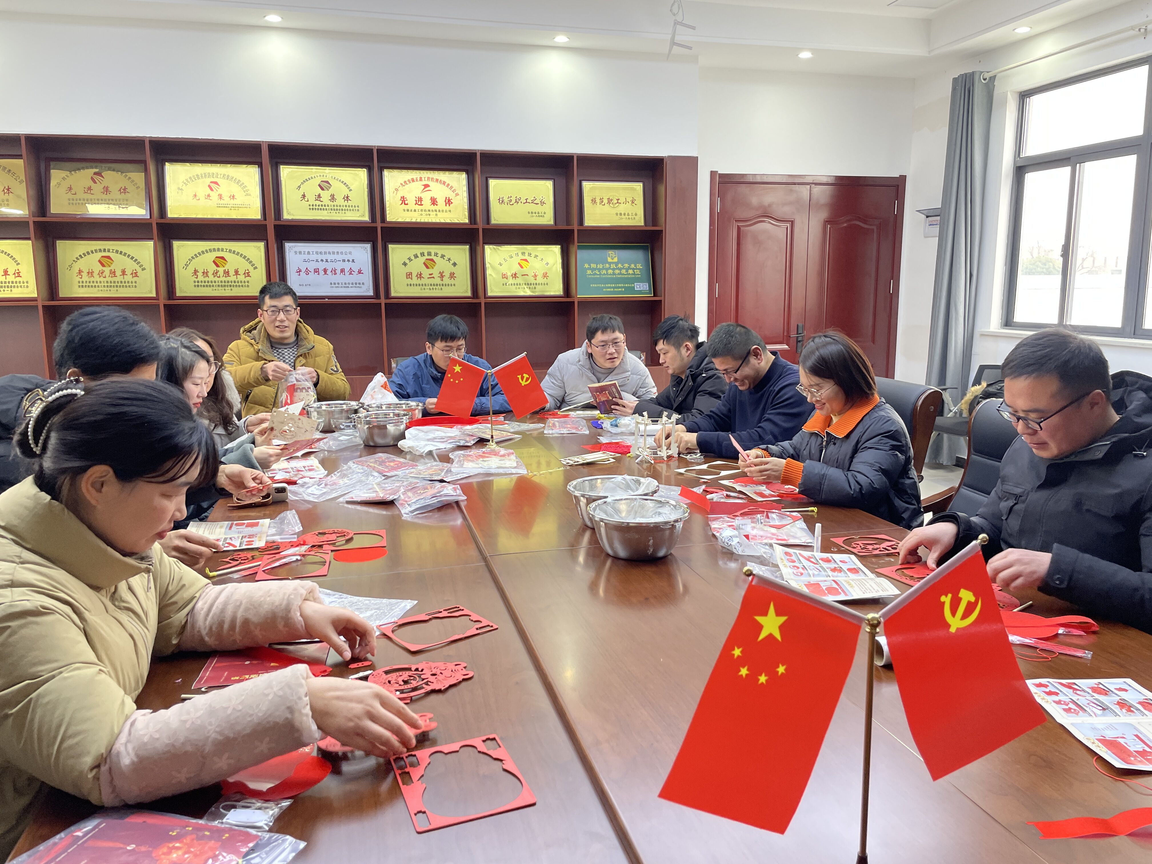 活动现场每个人都积极动手制作,大家聚在一起,开始折叠、拼接、粘灯笼,相互研究,切磋技艺,不一会儿一盏盏漂亮的花灯就呈现在眼前,大家提起灯笼相互祝福,现场气氛热闹、温馨、其乐融融。
