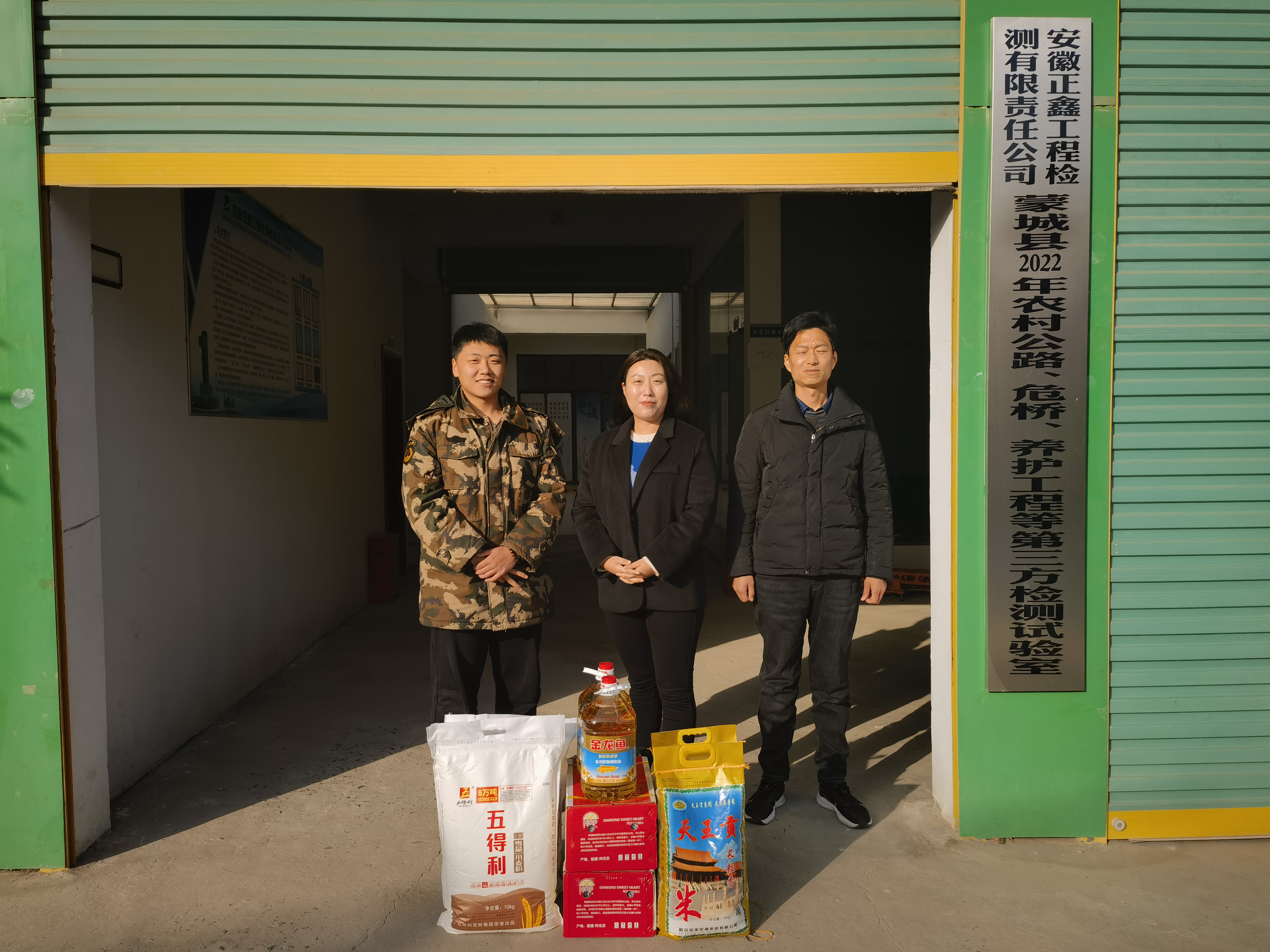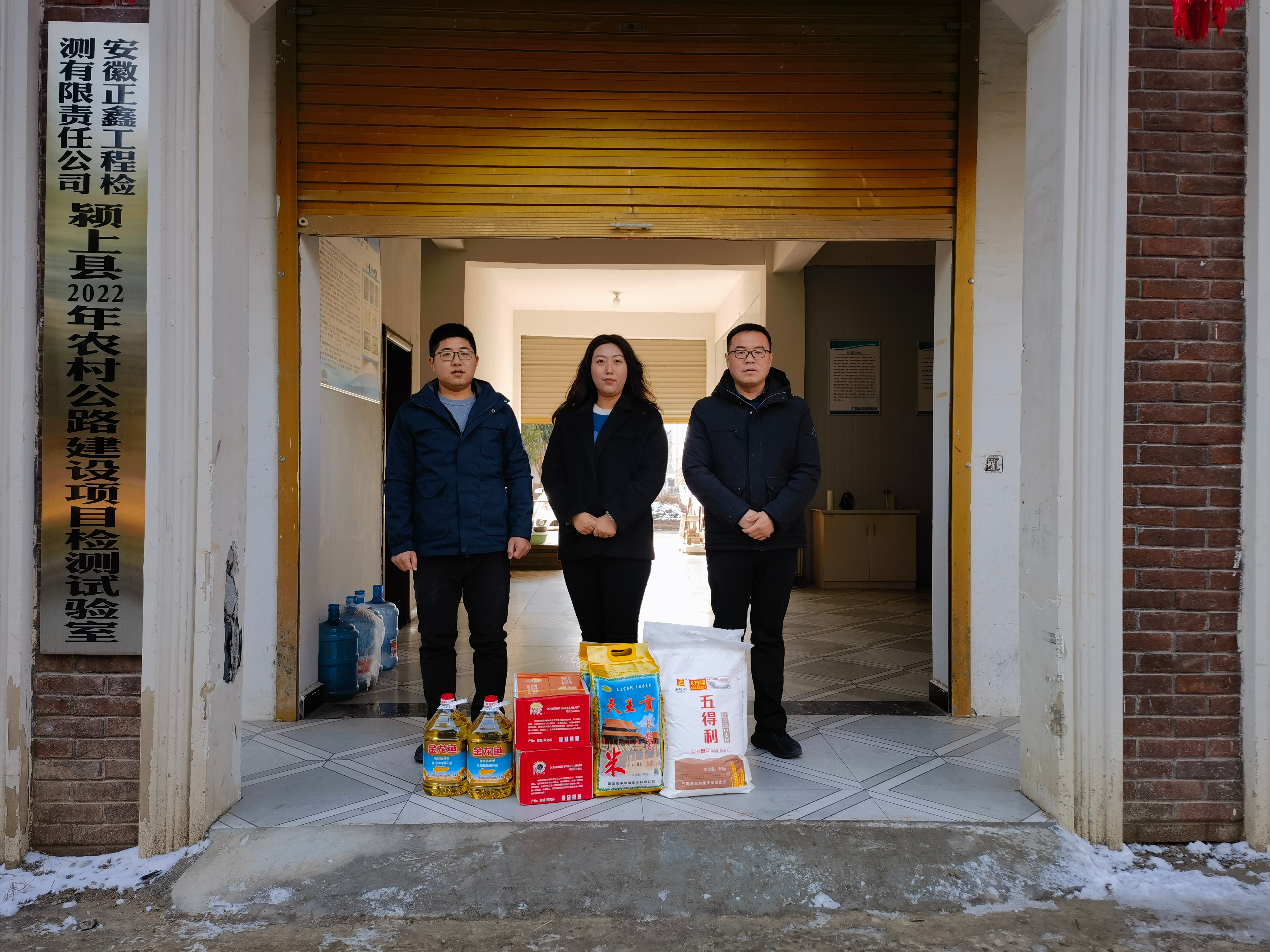 1月17日上午,在新春佳节即将来临之际,正鑫检测公司经理助理刘岩、张曼先后对颍上试验室、蒙城试验室、阜南试验室开展春节慰问活动,看望慰问春节期间坚守岗位的一线职工,为他们送上了节日的祝福以及米、面、水果等慰问品。