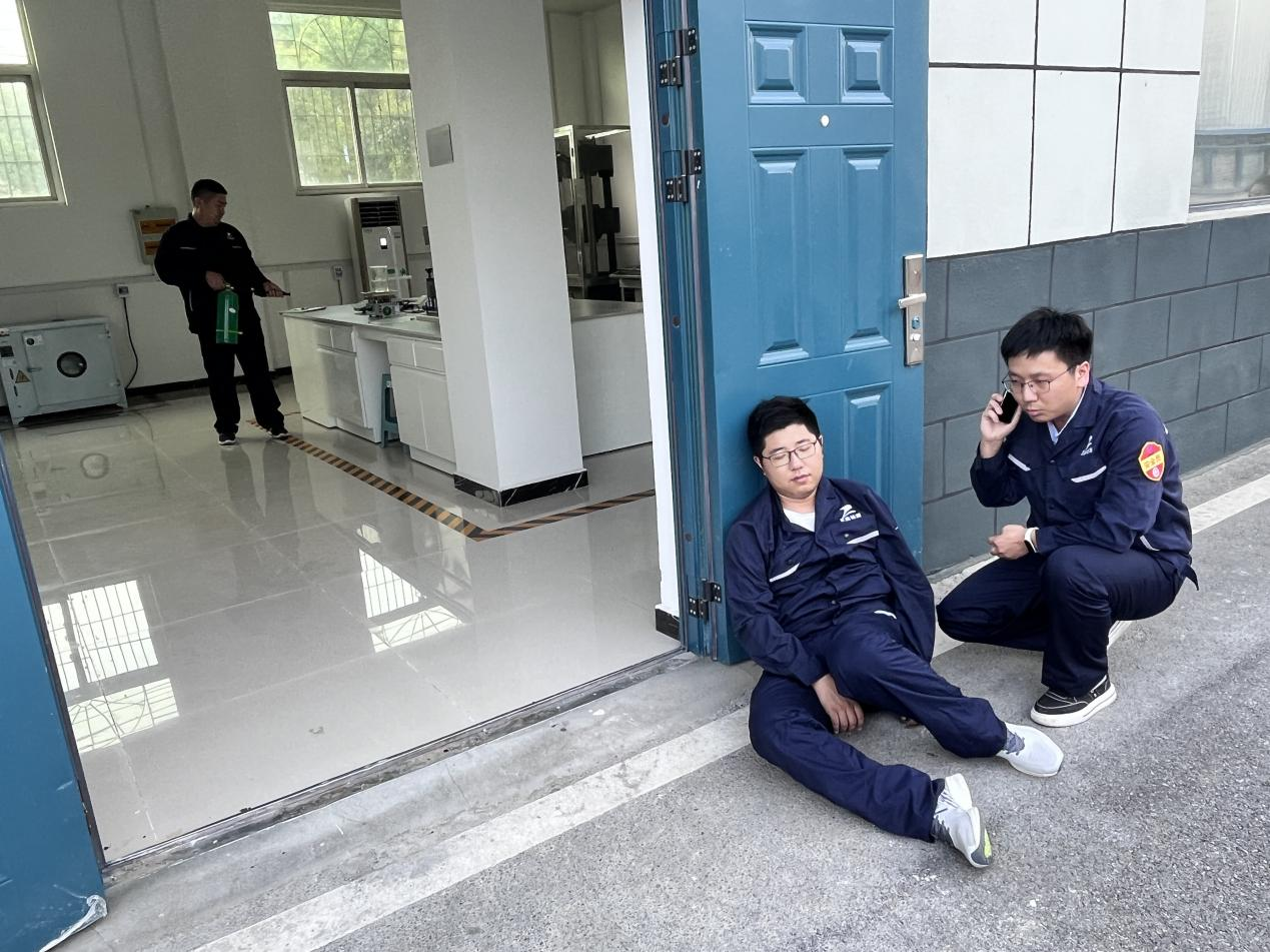 本次演练的场景是公司试验检测人员在功能室开展检测工作时,因线路老化、负荷过大造成室内线路起火,引起火灾,火势迅速蔓延,工作人员在撤离现场时因吸入大量烟雾晕倒在地。演练主要包括事故模拟、受伤人员救治、现场安全警戒等步骤。公司经理王思伟宣布演练开始后,根据副组长张曼的指令,各小组立即进入指定位置,按照演练方案展示出各自不同的既定动作,整个演练过程顺利进行。
