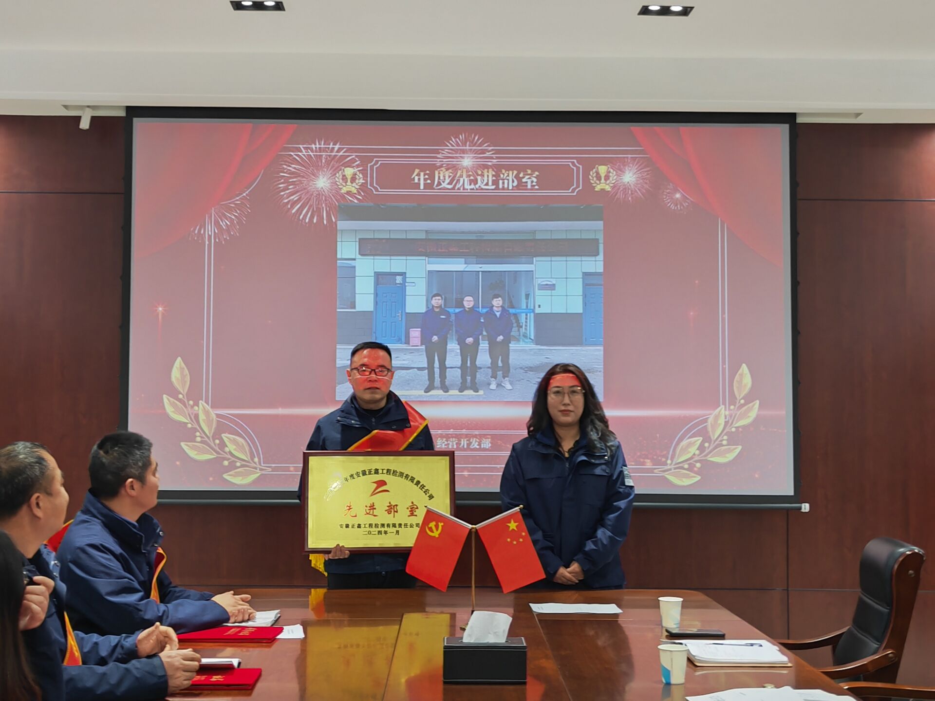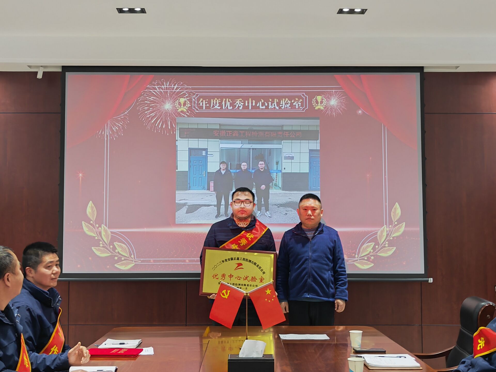 丰硕的果实来自于辛勤耕耘,全体员工真抓实干、齐心协力,取得了出色的成绩。公司经营开发部荣获“先进集体”,蒙城2023项目荣获“优秀中心试验室”,员工宋宏飞、潘大奎等10人荣获“先进工作者”,总结大会现场对各先进现场颁奖。