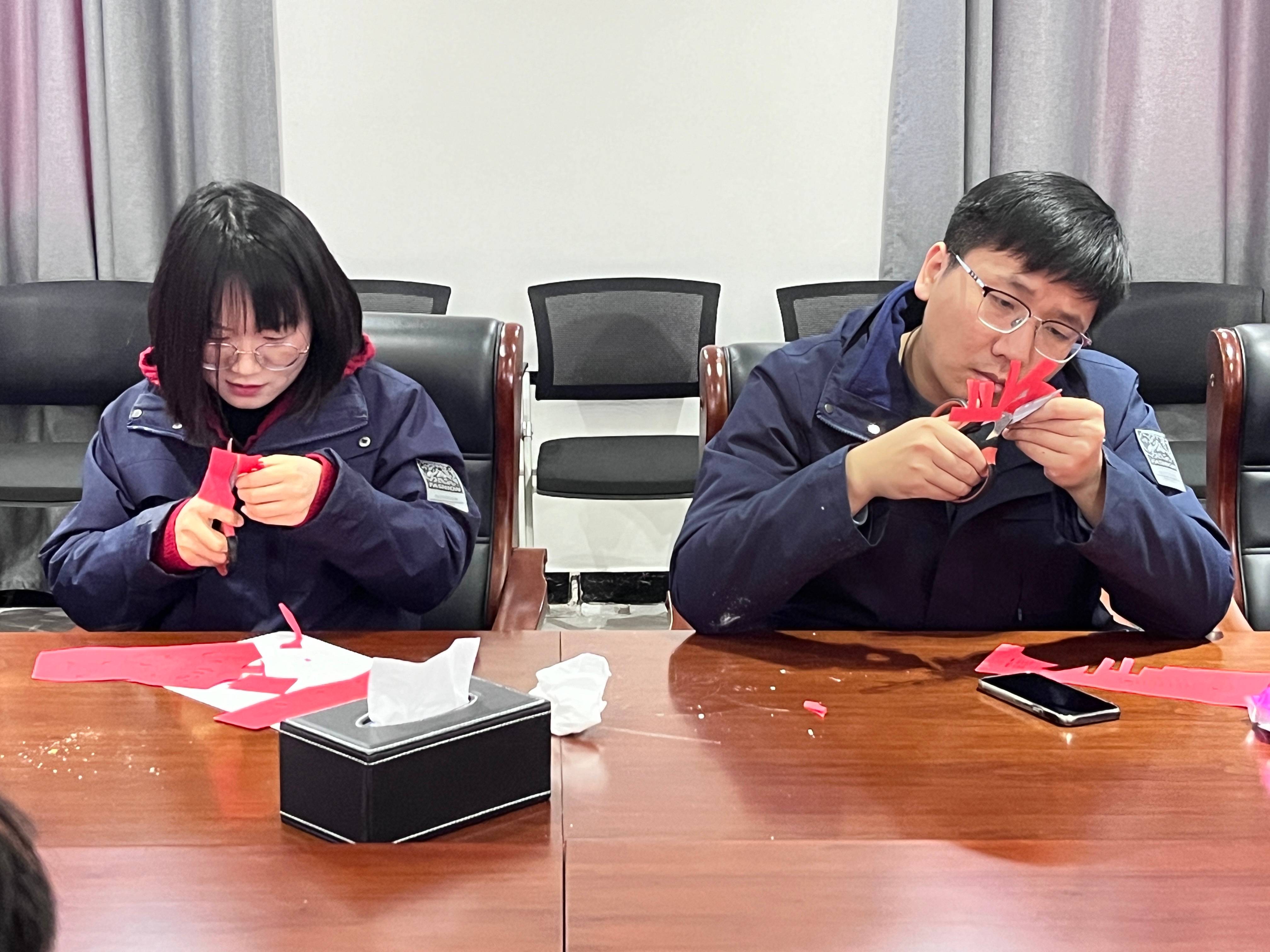 在这喜庆气氛中,大家开始了手工剪纸和黏土创意,一把把剪刀、一张张薄纸在一双双的巧手下,灵活地穿梭,一个个寓意美好的图案在大家手中活灵活现,同时黏土创意作品也制作完成。亲身感受我国传统民间艺术的魅力,营造喜庆祥和的节日氛围,寄托着全体员工对新年的美好祝愿。