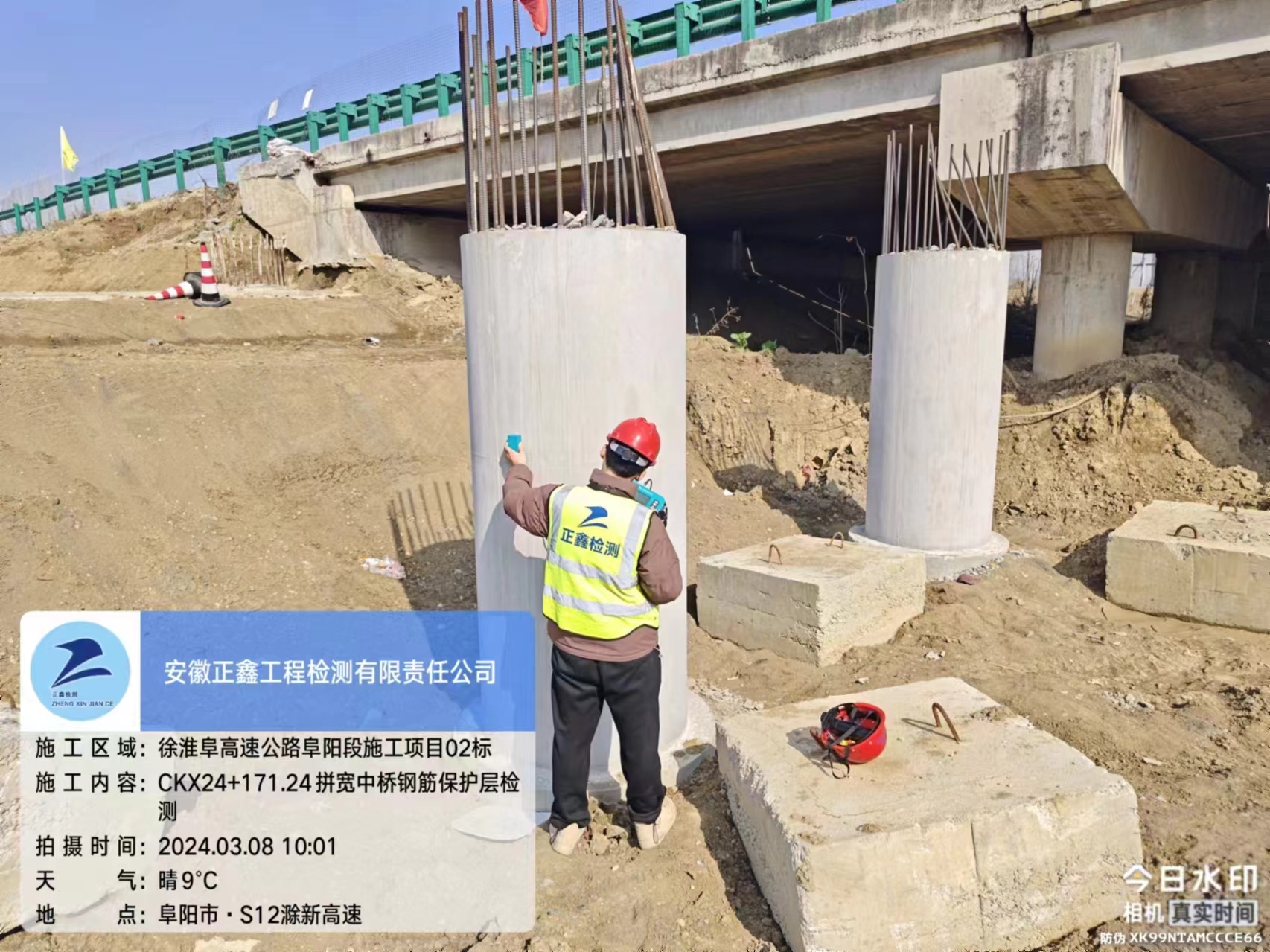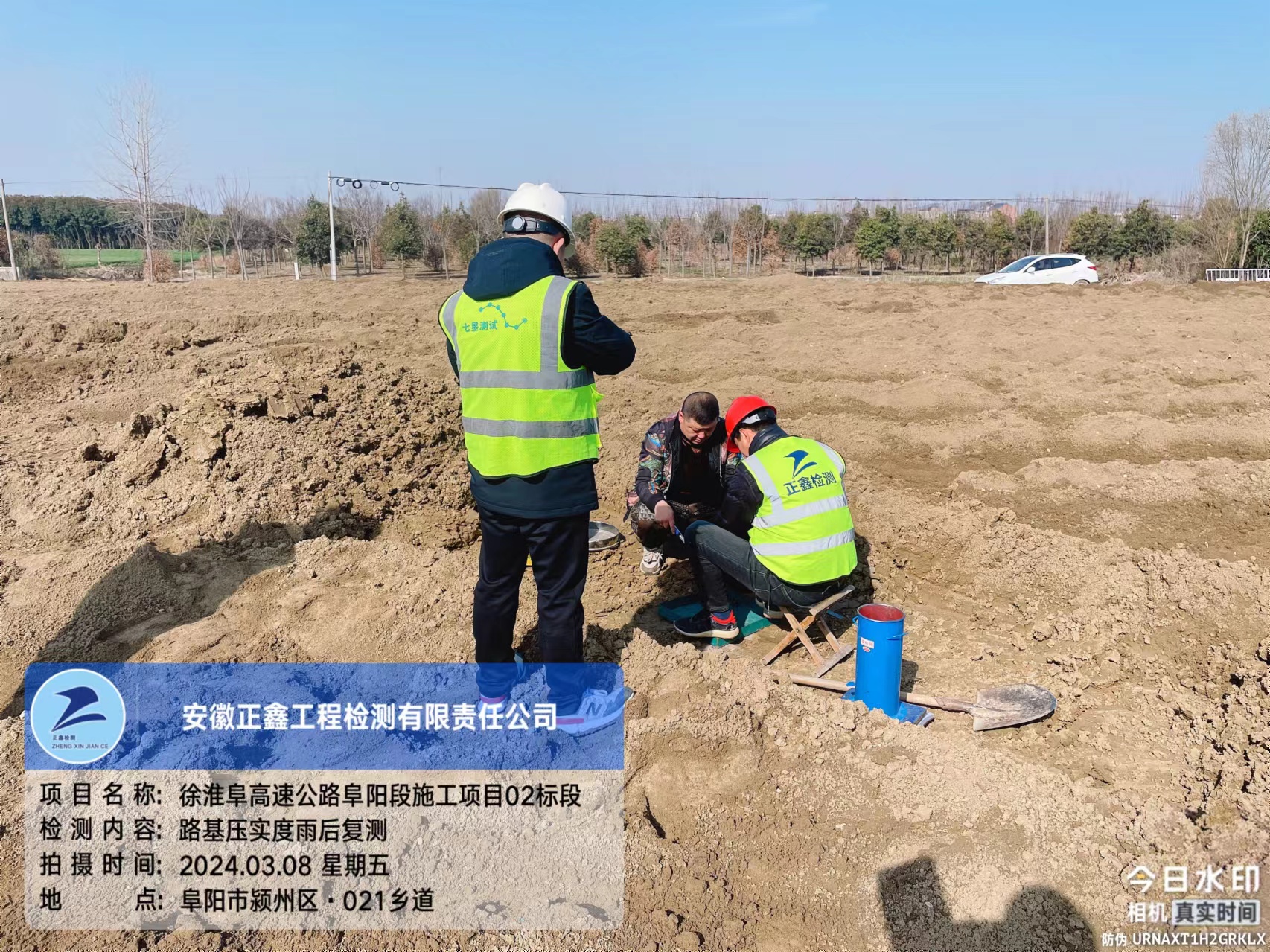 首先开展水泥、砂、石等原材料抽样检测工作,保障进场材料满足技术要求。其次开展冬季施工水泥混凝土结构物回弹强度、钢筋保护层厚度验证检测,摸排低温天气施工水泥混凝土结构物质量状况。最后开展雨雪天气过后路基压实度现场复核检测,为下一步水泥稳定碎石基层施工打牢基础。正鑫检测公司试验检测人员秉承科学公正、精确可靠、优质服务、持续改进的工作精神,为徐淮阜高速公路阜阳段施工项目添砖加瓦。