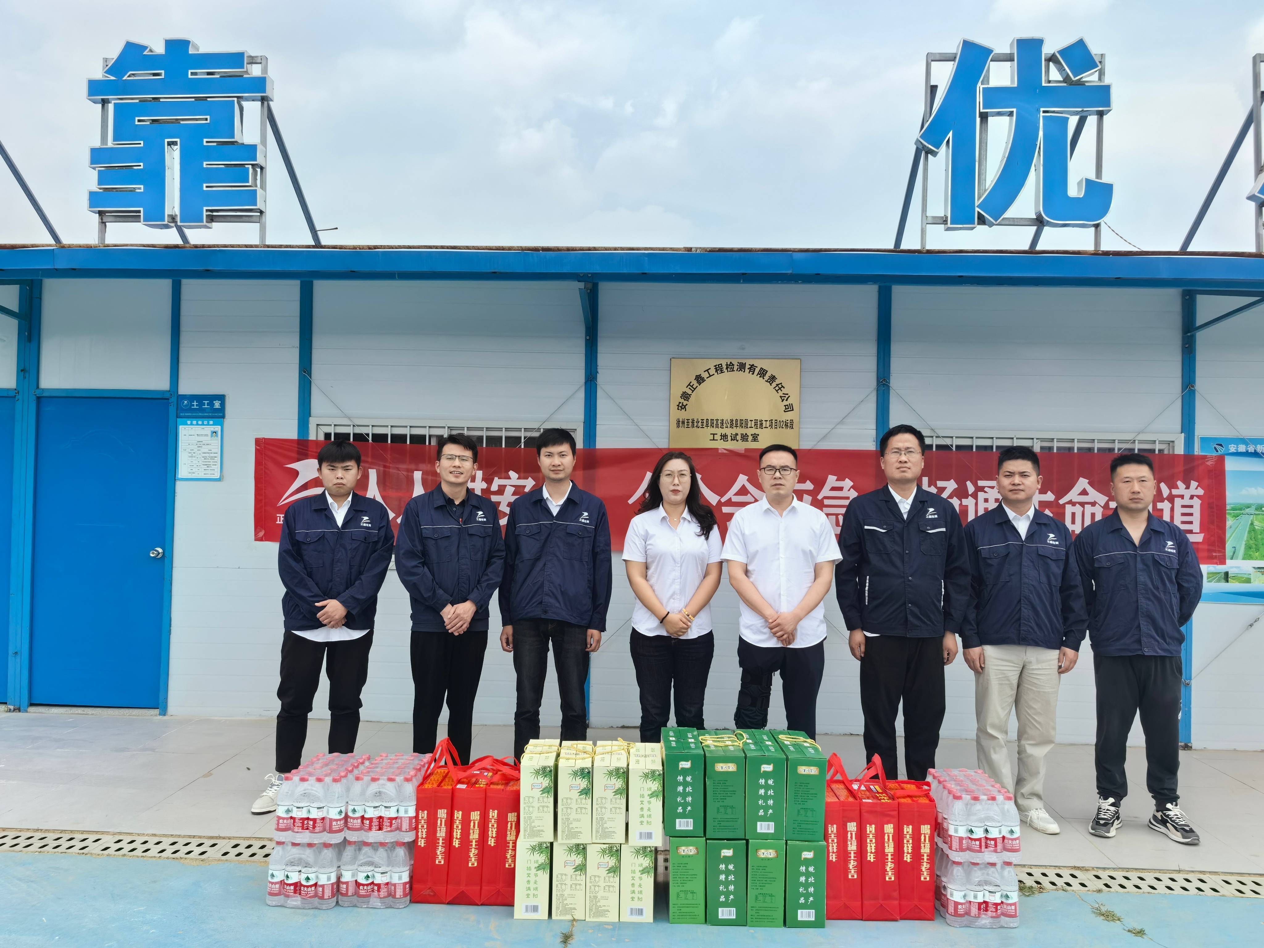 6月6日公司经理助理刘岩、王杨杨对徐淮阜高速、颍上425等直管项目试验室进行慰问,为项目一线员工送去粽子、咸鸭蛋等慰问品并向他们致以节日祝福,衷心感谢一线员工们的辛勤付出。